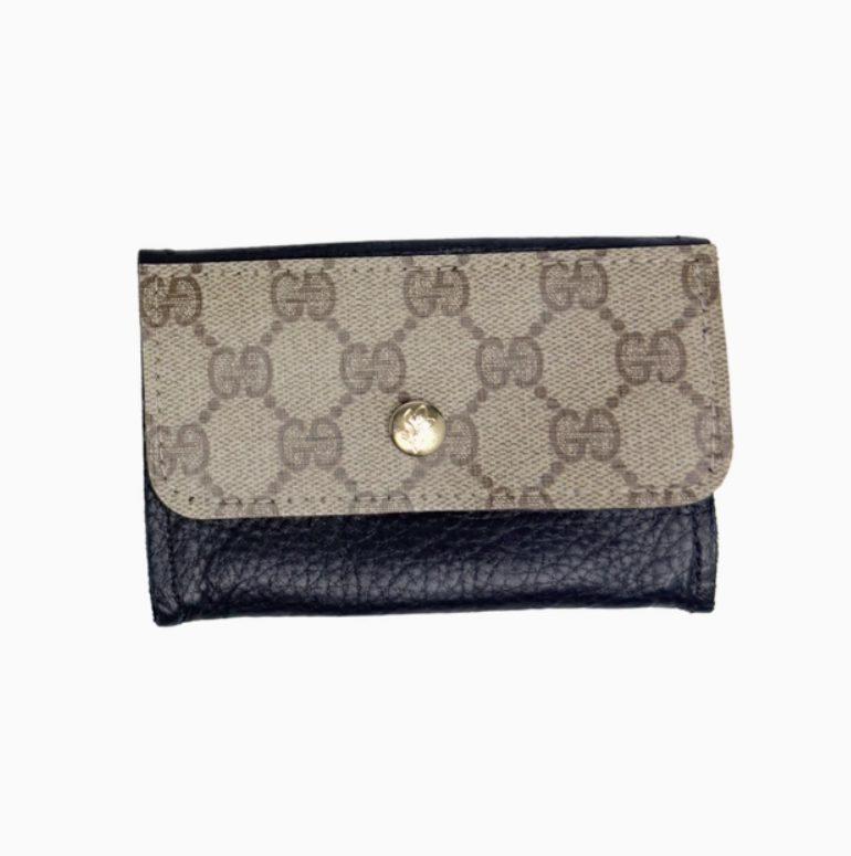 This small designer wallet proves that simplicity can still make a statement. The Tessa Wallet is crafted from luxe leather and accented with authentic upcycled Louis Vuitton or Gucci canvas—perfectly sized for cards and folded cash.