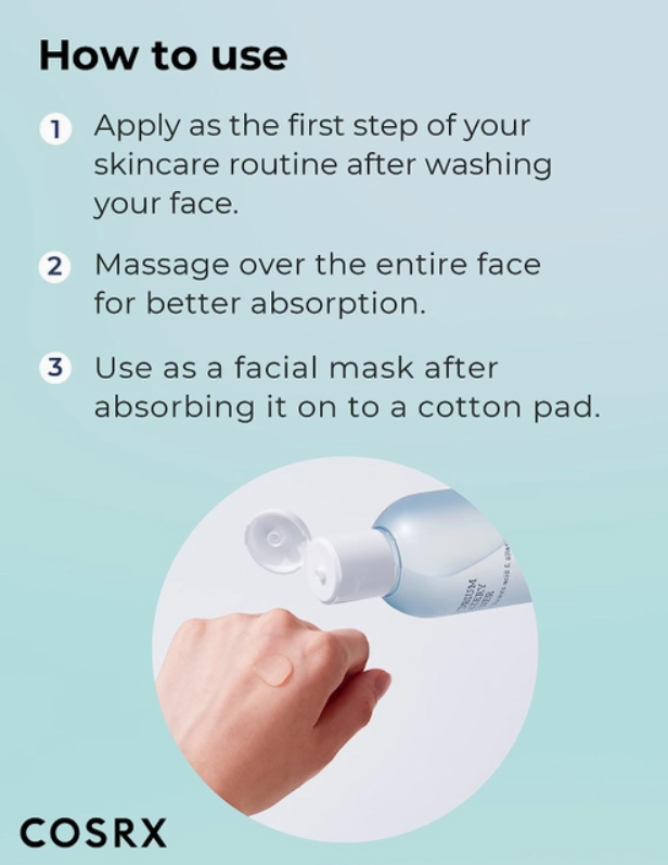 Full of hydration for dewy skin! Moisture toner with vitamin B5 and hyaluronic acid which makes your skin more dewy with full of hydration. Not only it's moisturizing toner but also it's the foundation of skin health recovering skincare step.
