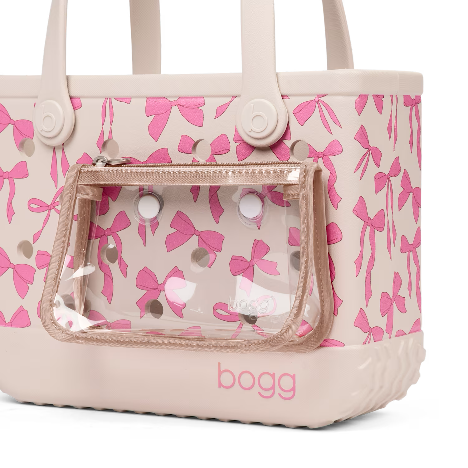Includes a small clear pouch for storing little essentials like keys, lip balm, or hand sanitizer.