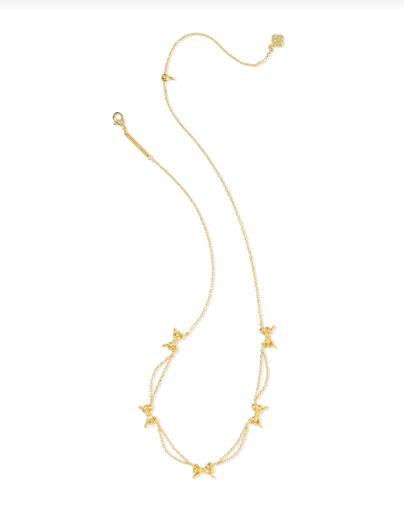Wrap up your stack with the Bow Gold Strand Necklace. This darling design features ribbon accents on a dainty chain. Layer it with your everyday basics or favorite bow styles for a sweet (and trendy!) look.