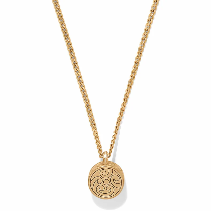 A silver spherical pendant necklace is framed by pierced and scrolled details inspired by the craftsmanship of jewelry artisans from Taxco, Mexico.
