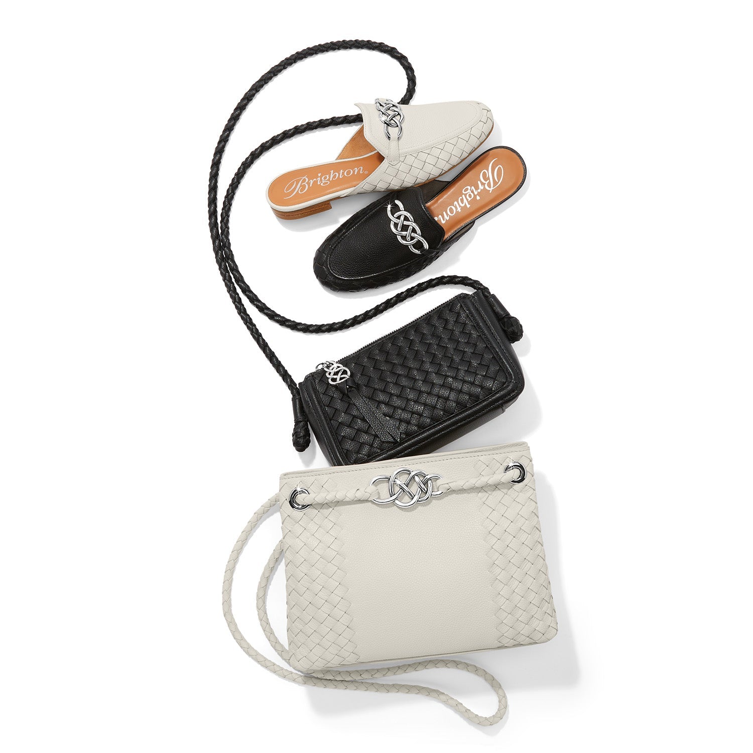 This crossbody is an easy top zip bag with a full cross weave front panel trimmed with a smooth bumped border. An Interlok silver hardware and tassel detail gives the silhouette a finishing touch. This bag has a back pocket for your essentials like phone and car key. The tubular woven crossbody strap makes it casual and so easy to wear.