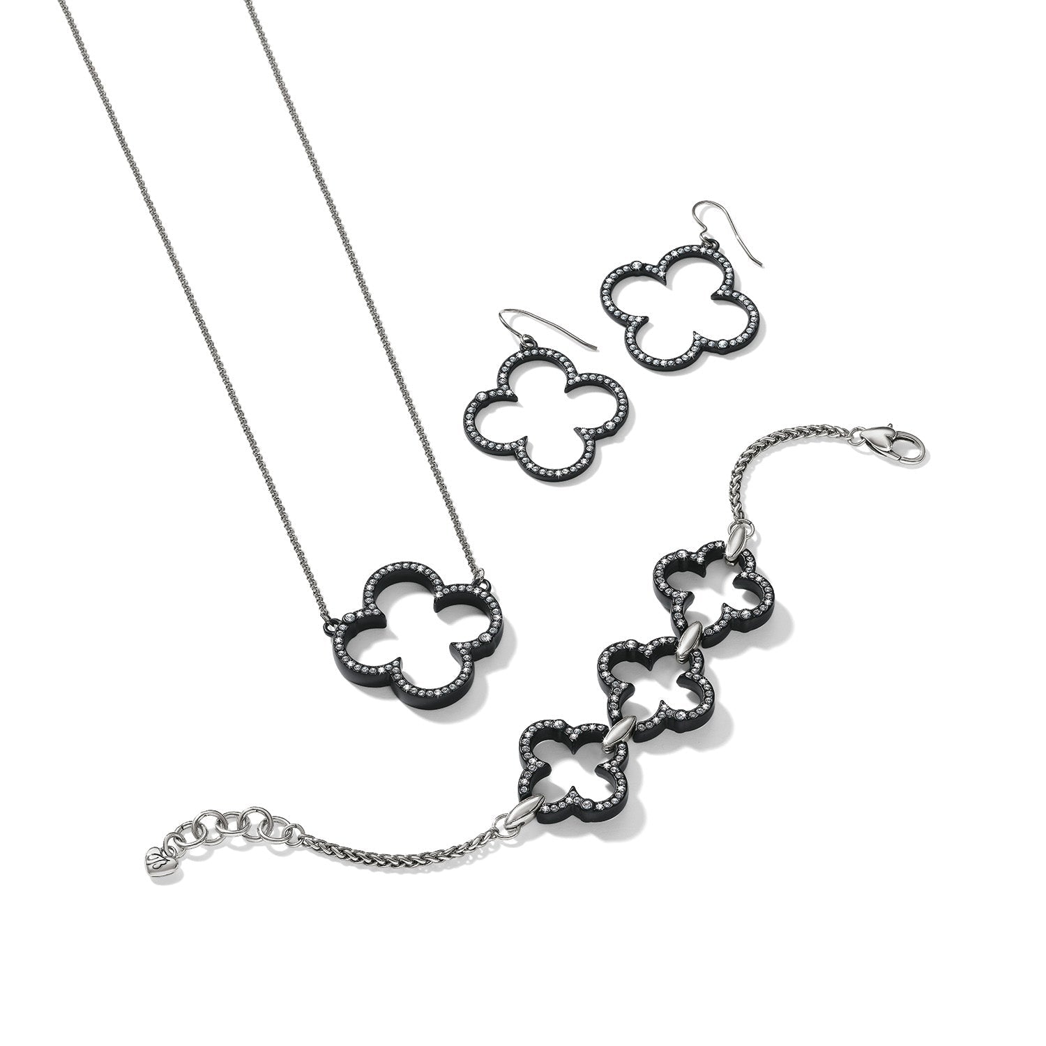 A beautiful classic quatrefoil shape is outlined with hand-set crystals on this pendant necklace that looks sensational worn solo or layered with chain link necklaces.
