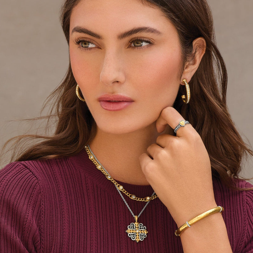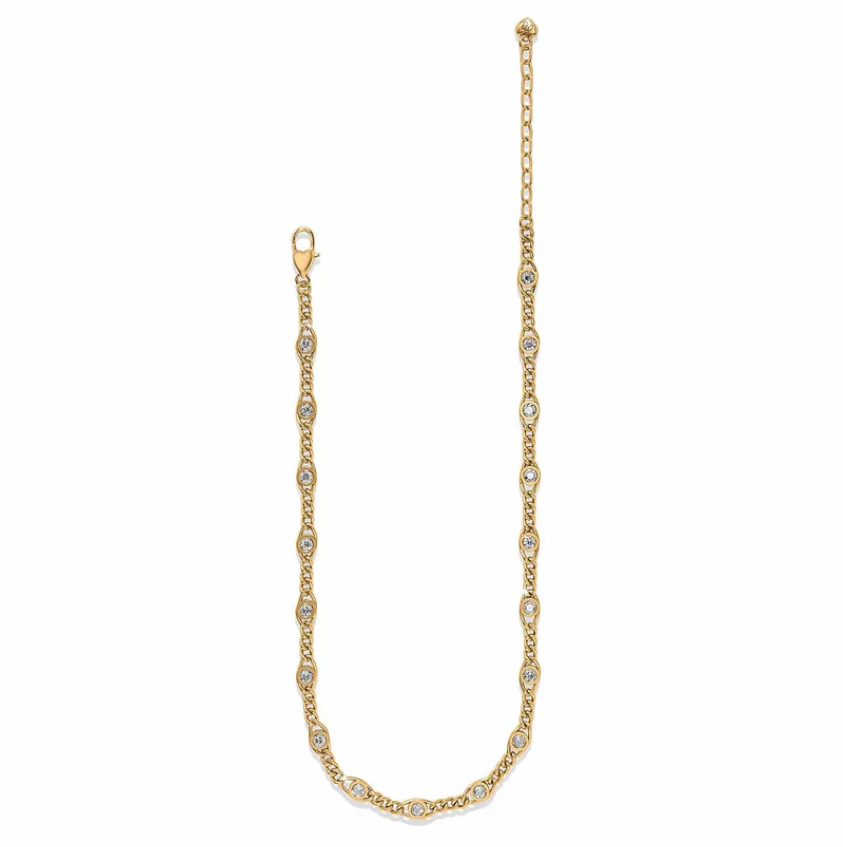 A curb link chain features silver shade and golden shadow crystals for a luminous touch of glamour.