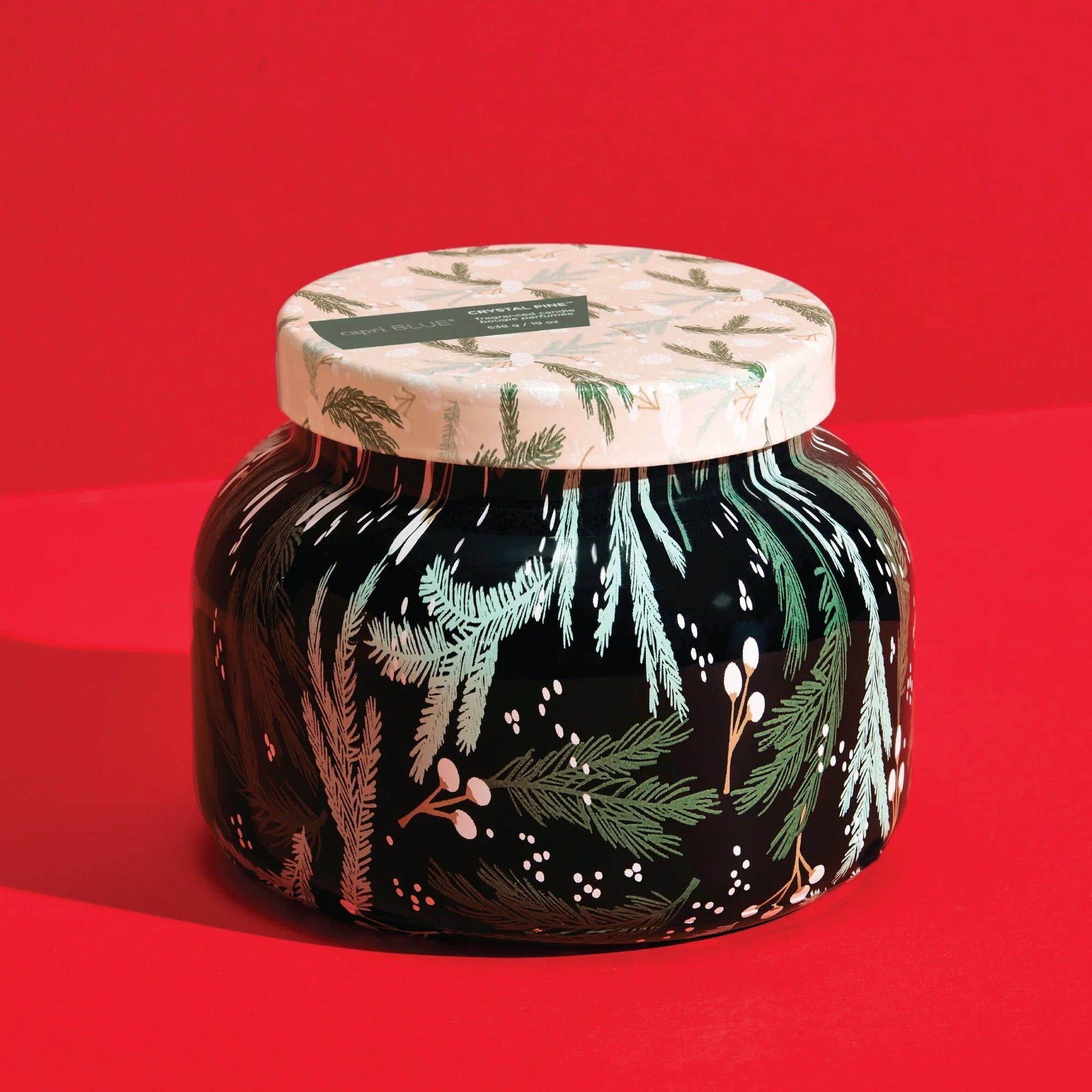 Walking in a winter wonderland with the Crystal Pine Holiday Pattern Play Signature Candle! A decorative and dark vessel filled with frosted fir, snowy woods, pine and sage. This candle will sure bring out the holiday feels.