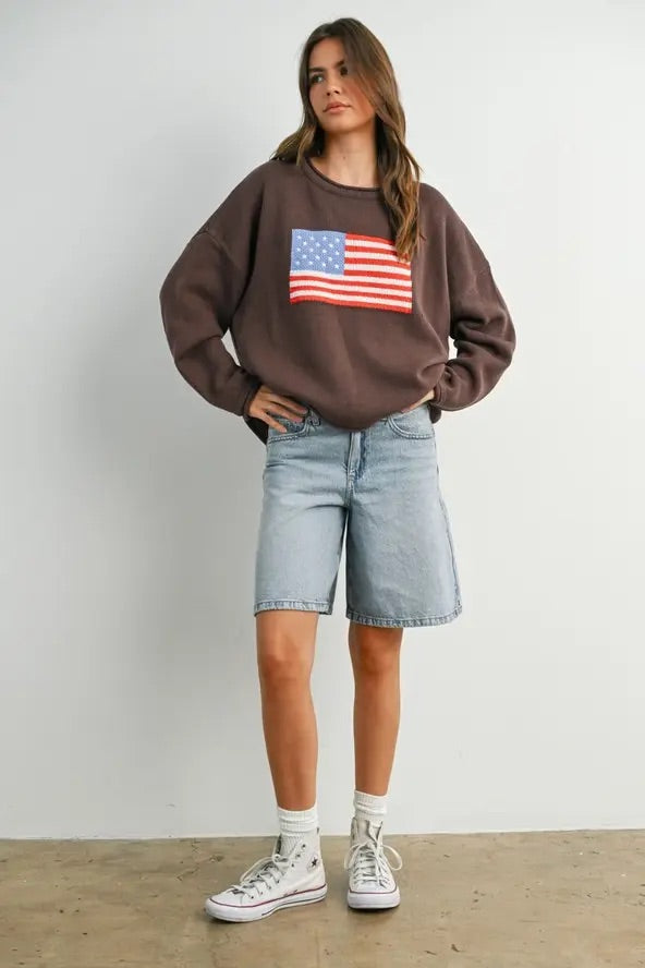 Graphic Knit Long Sleeve Top
