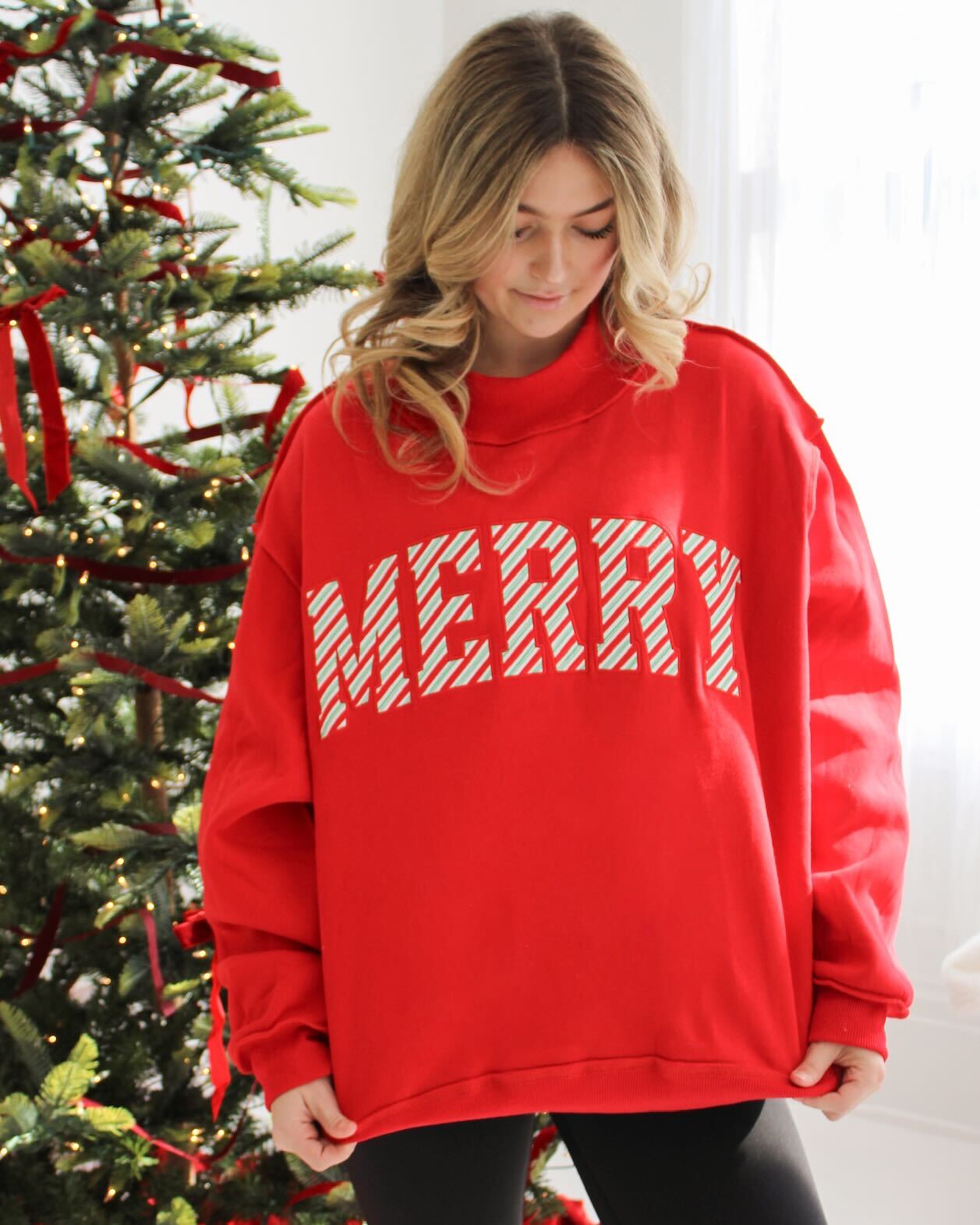 Merry Embroidered Mockneck Sweatshirt