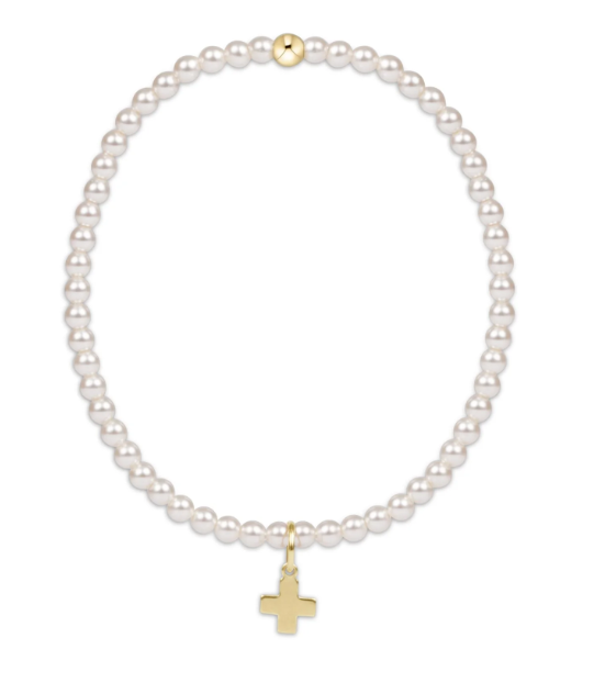 Extends Classic Pearl 3mm Bracelet - Signature Cross Gold Charm