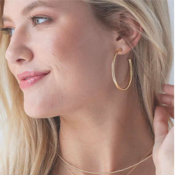Round Gold 2" Post Hoop - 3mm - Smooth