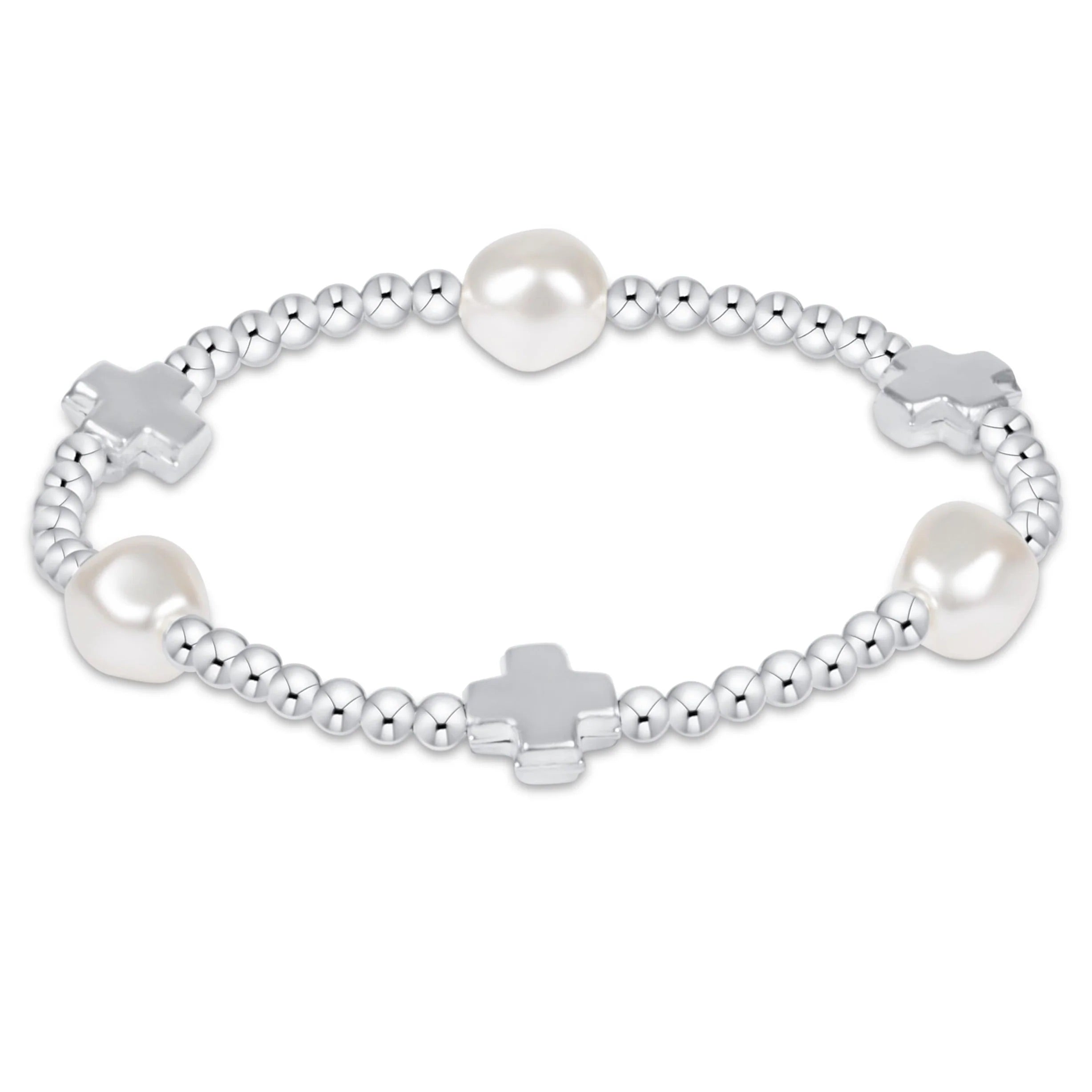 NEW! Our signature cross pattern with our admire pearl in sterling silver.