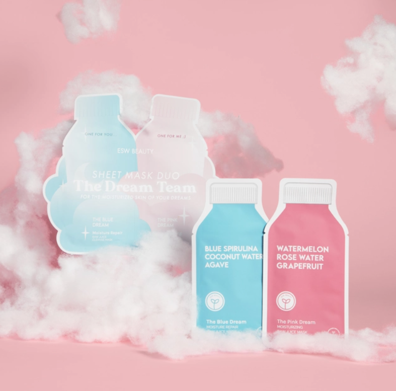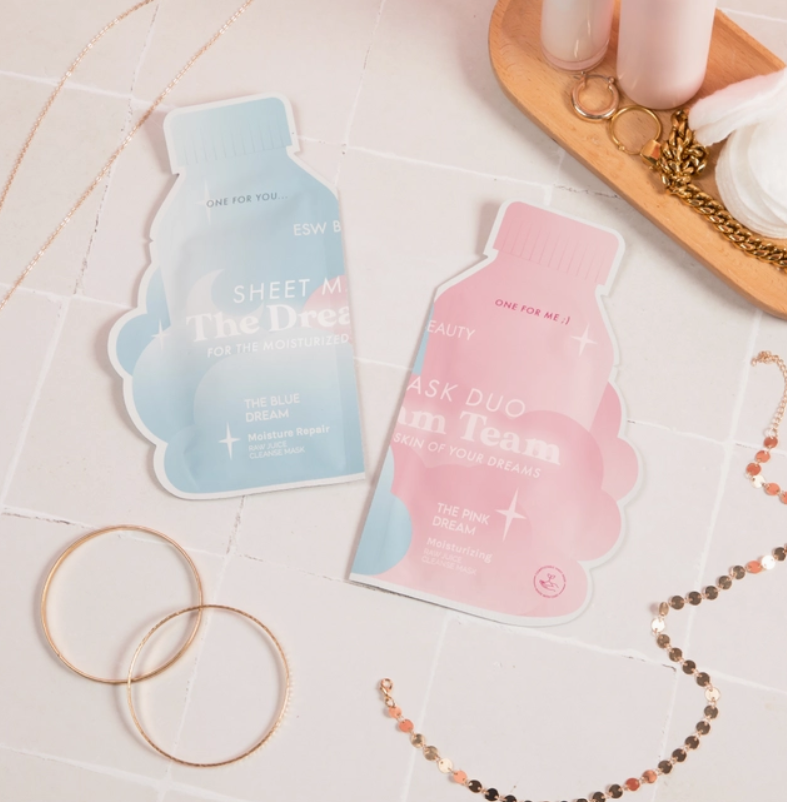 Meet The Dream Team Sheet Mask Duo - a 2-in-1 moisturizing skin treatment pair that is a perfect opportunity to share a pampering experience with your bestie, your significant other, your mother-daughter duo, or as a two pack just for you! The Dream Team includes two of our bestselling compostable raw juice masks in one convenient pouch: The Pink Dream for moisturizing and The Blue Dream sheet mask for moisture repair.