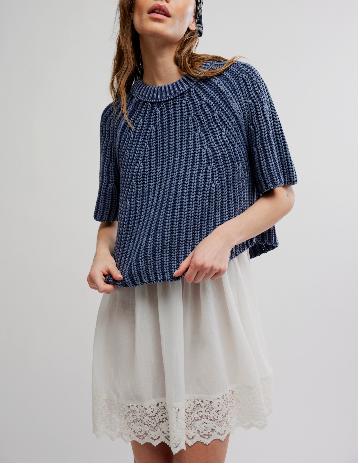Cozy meets contemporary in this charming sweater tee, featuring a relaxed silhouette, soft cotton fabrication, and a classic knit design.