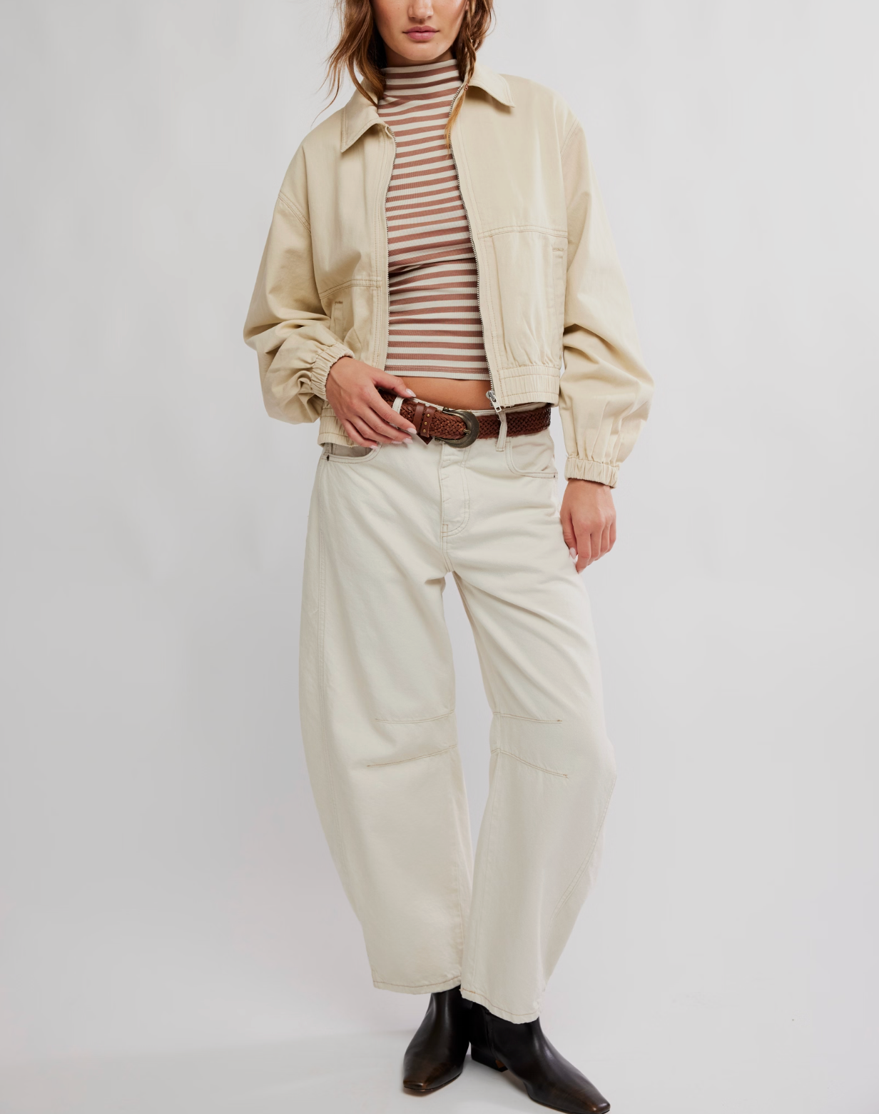 So essential for any-season layering, this cotton twill jacket from We The Free is featured in the perfect bomber-inspired style with a zip-front closure for an effortless addition to any outfit.