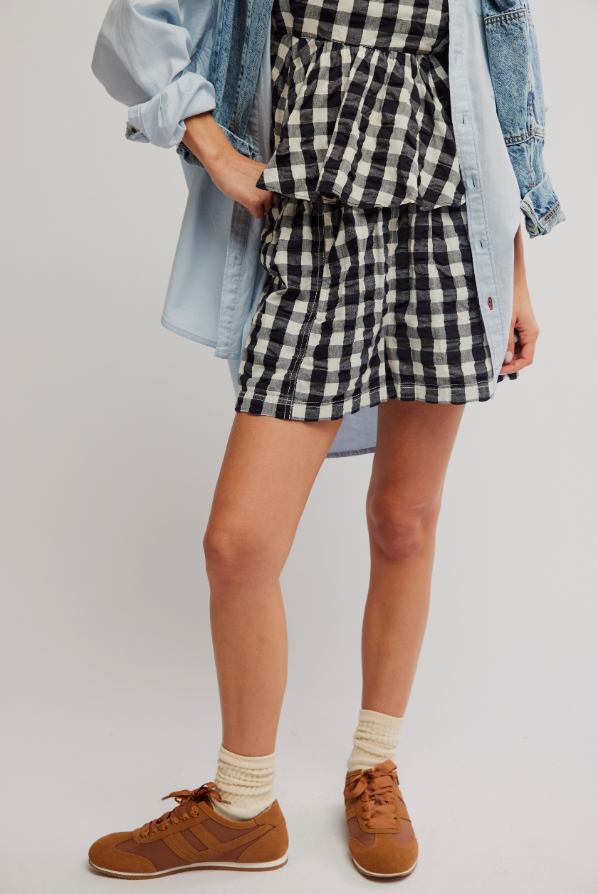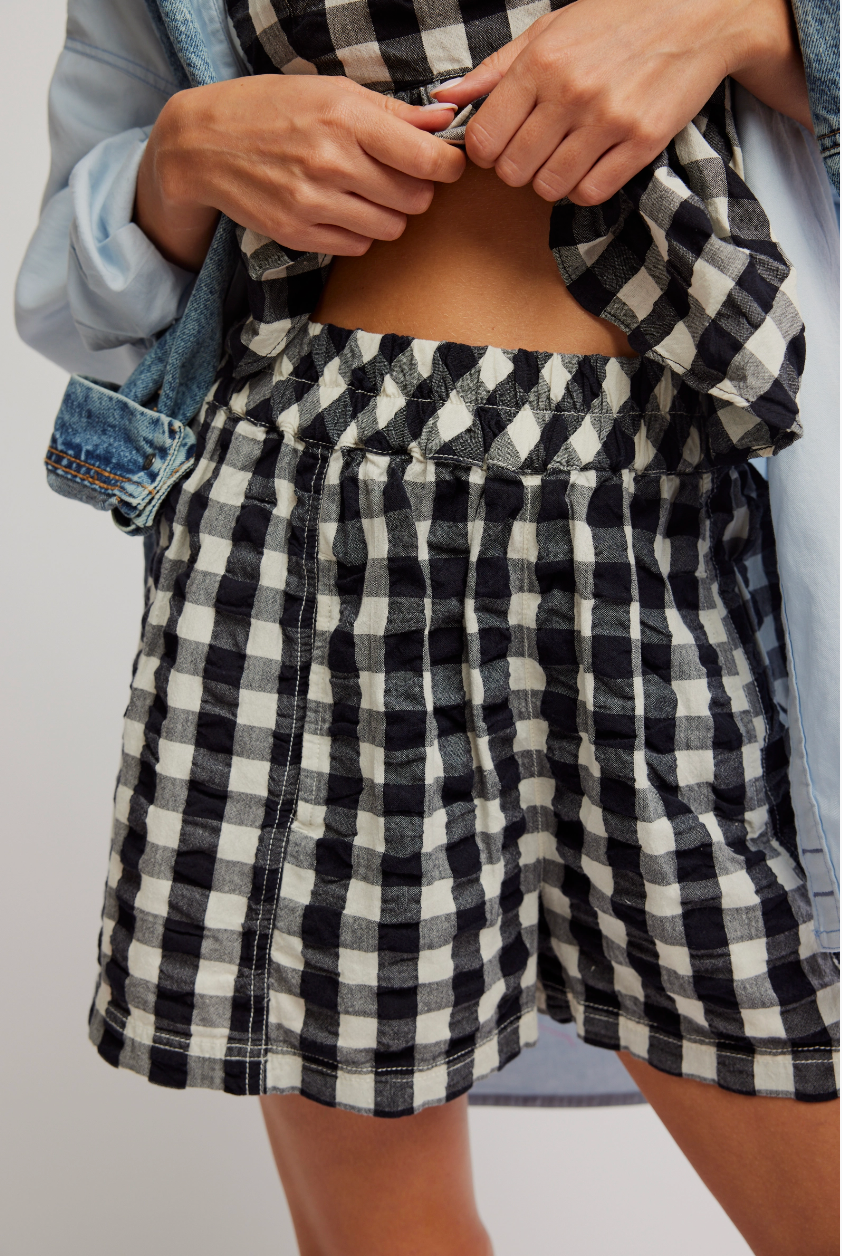 Features: Pull-on design, soft seersucker fabrication, classic gingham fabrication