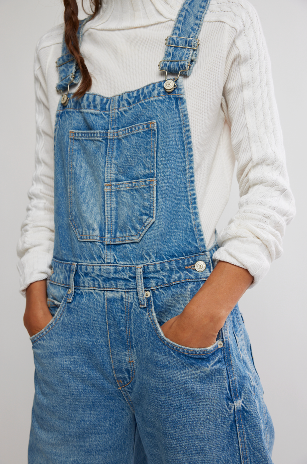 Fit: Bib-and-brace design with wide barrel-leg