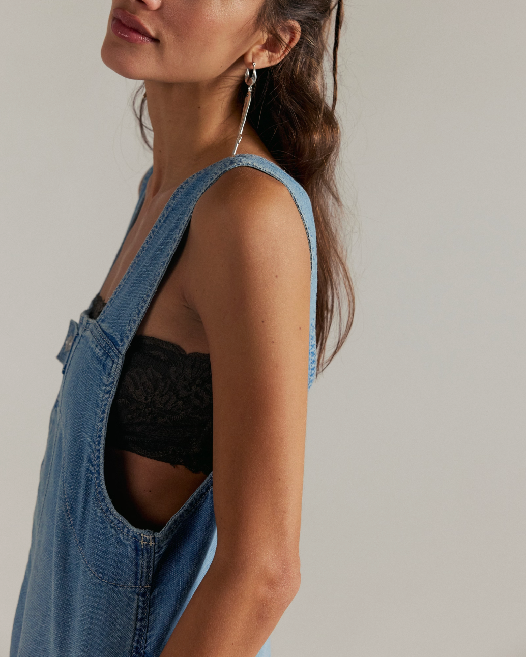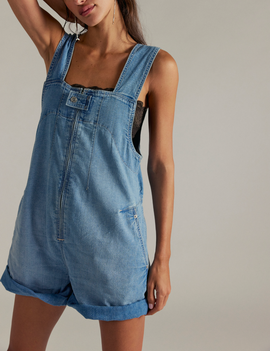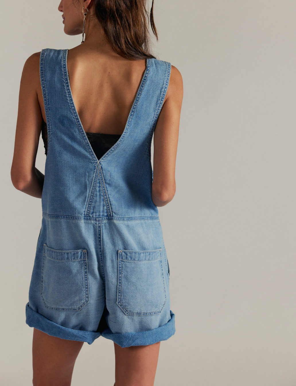 Your easiest instant outfit, this denim shortall from our We The Free collection features a slouchy, shapeless silhouette and classic pinafore design for a timeless touch.