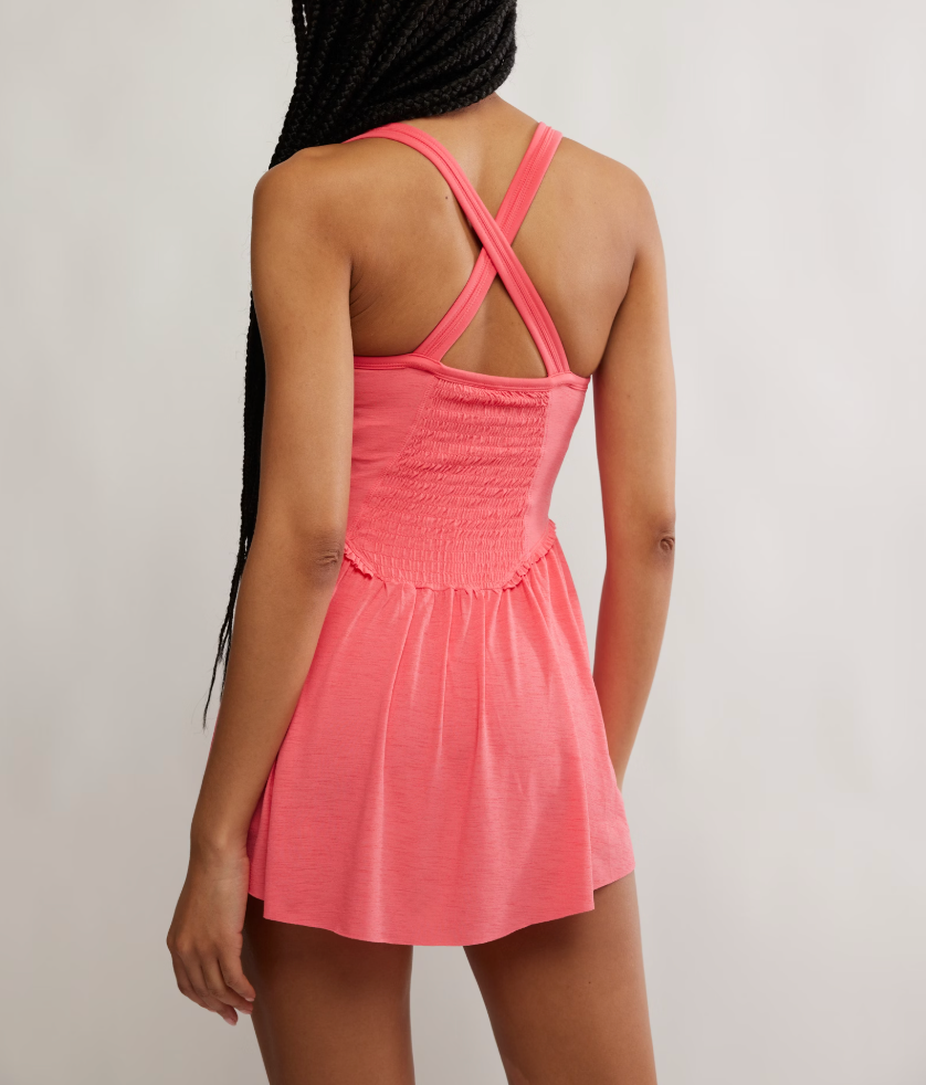 Perfect for a day on the go, this dress features a super-soft fabrication with elasticated smock-front detail and flattering cross-back straps.
