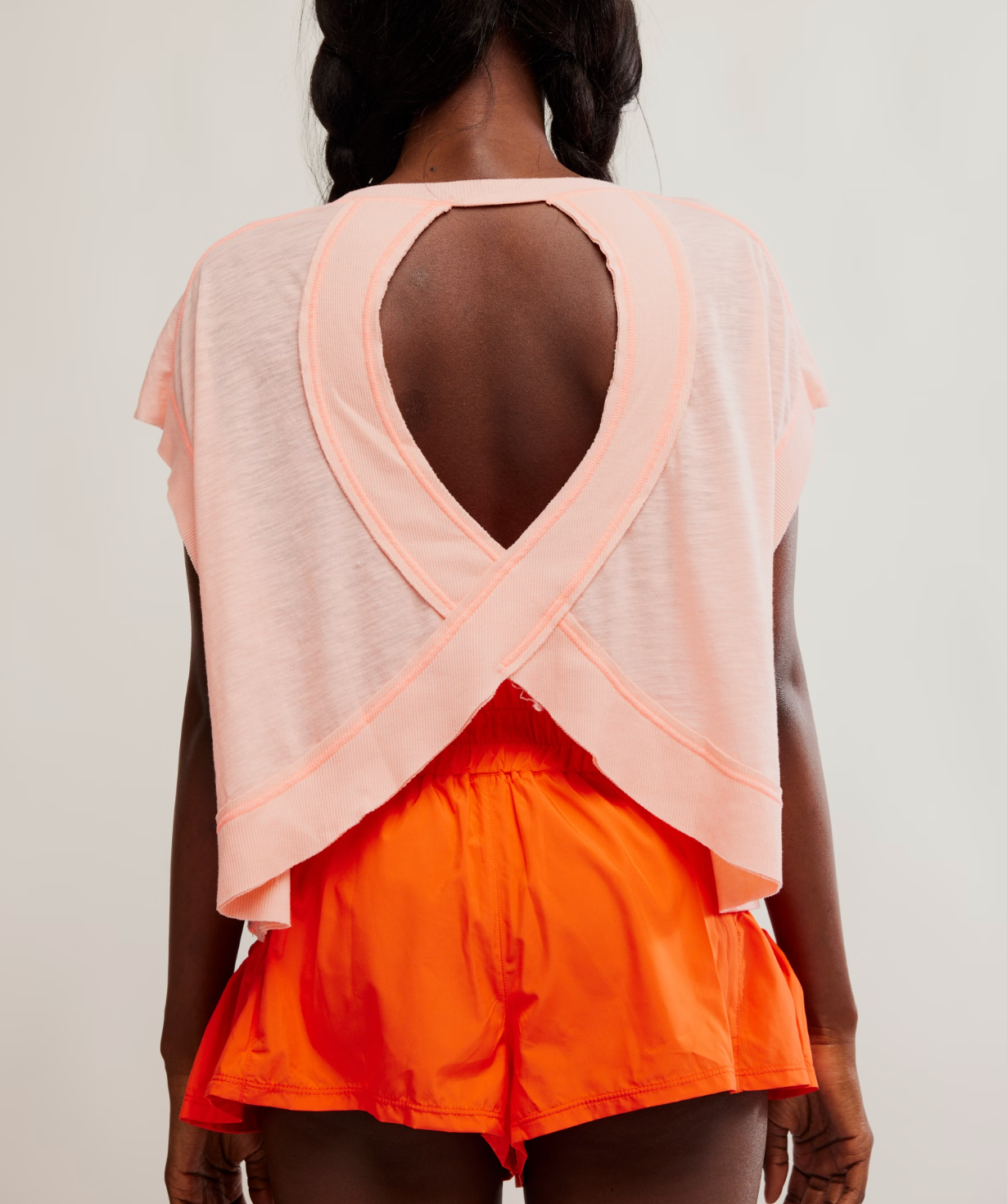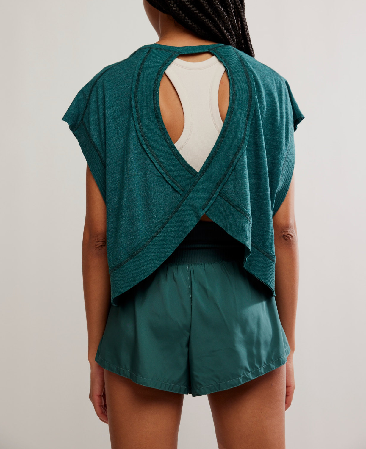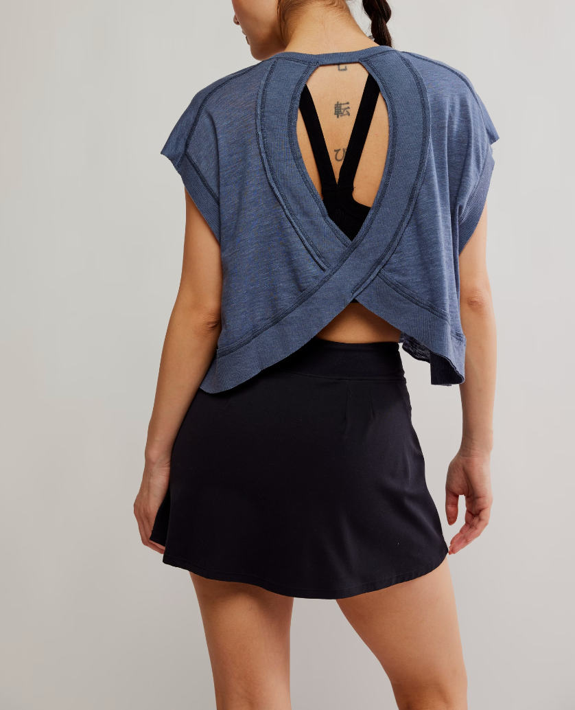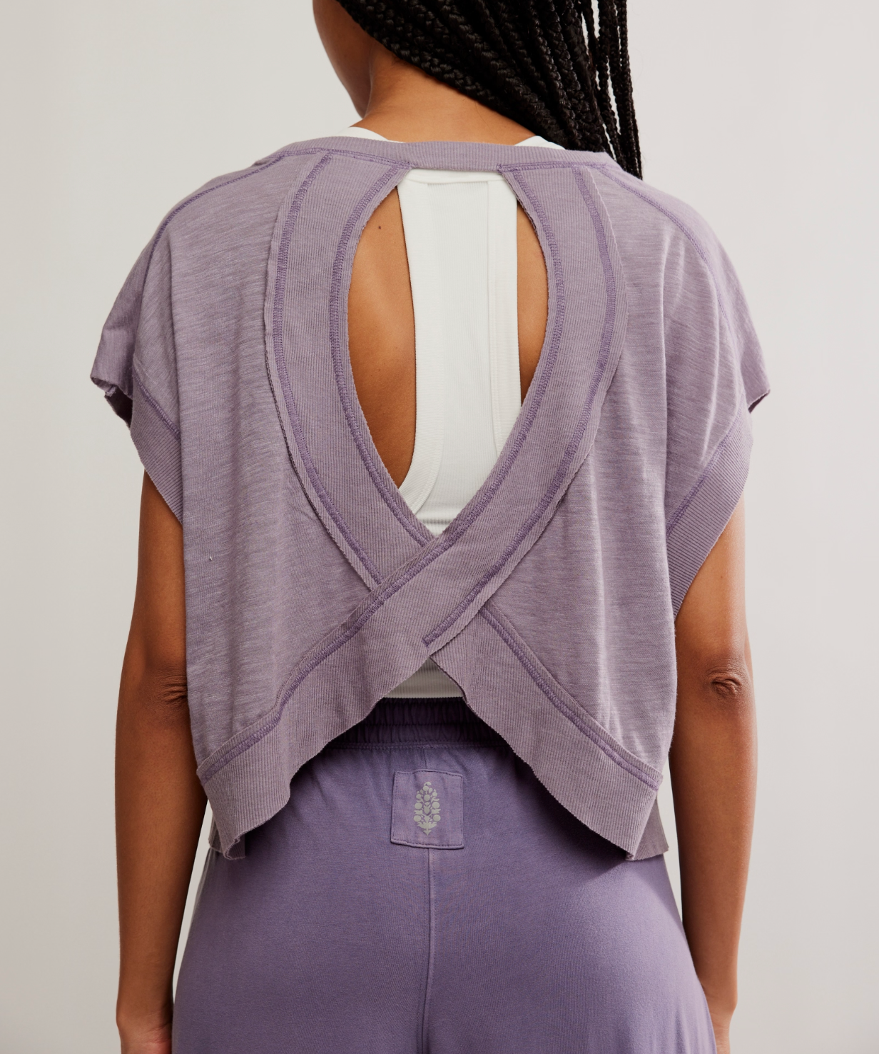 Make your next move in this light and airy layering tee featured in a slouchy design with a wrapped cutout back that’ll keep you cool through all your workouts.