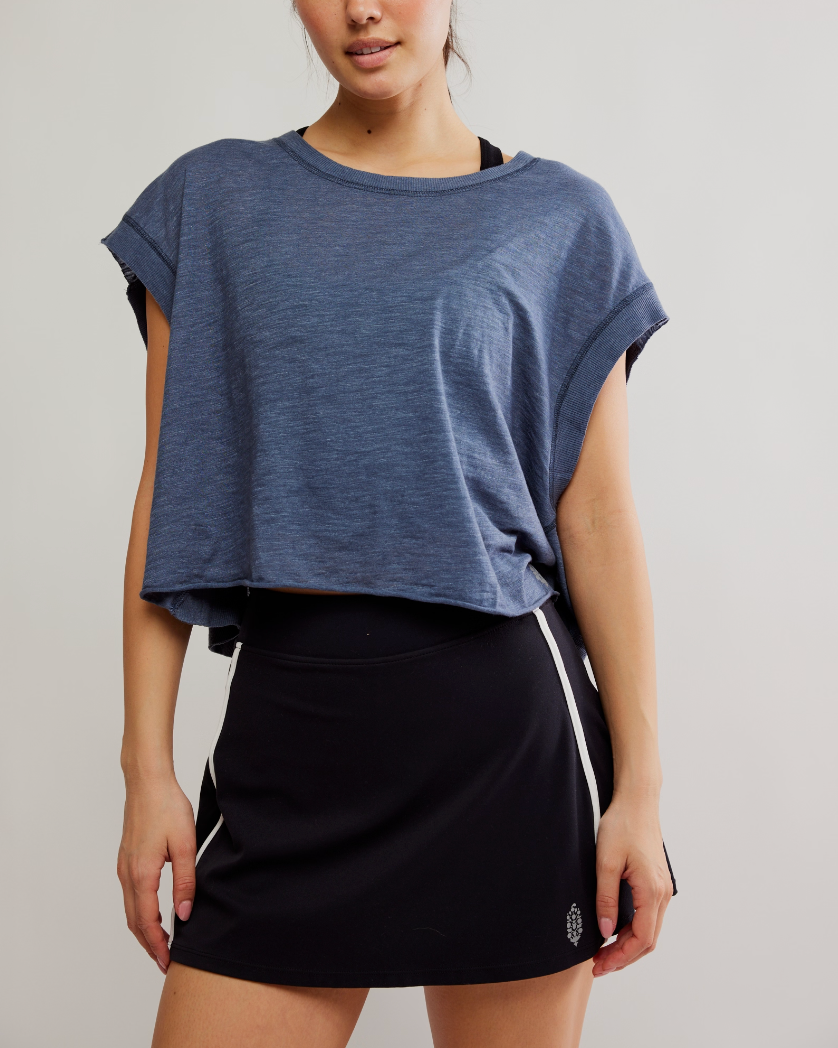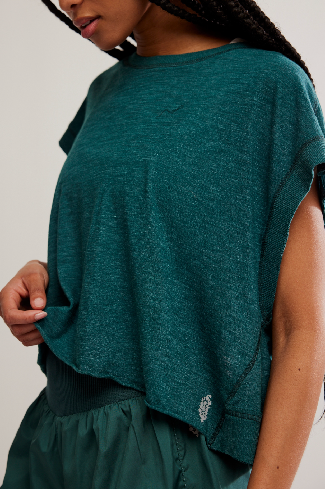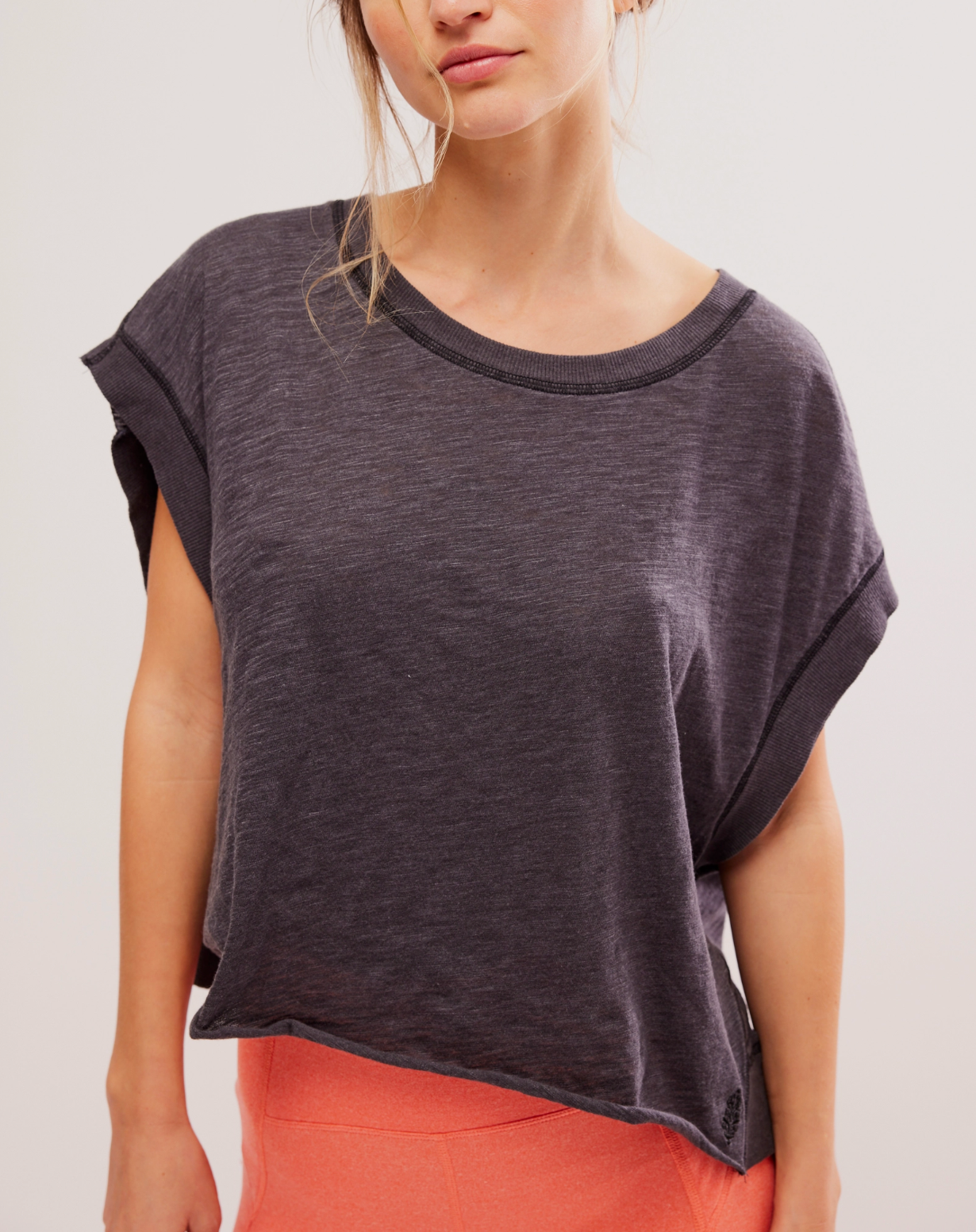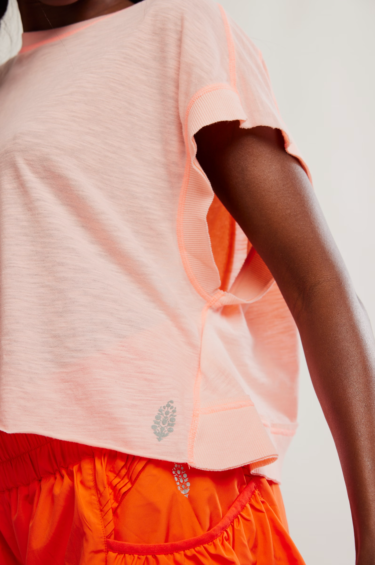 Make your next move in this light and airy layering tee featured in a slouchy design with a wrapped cutout back that’ll keep you cool through all your workouts.