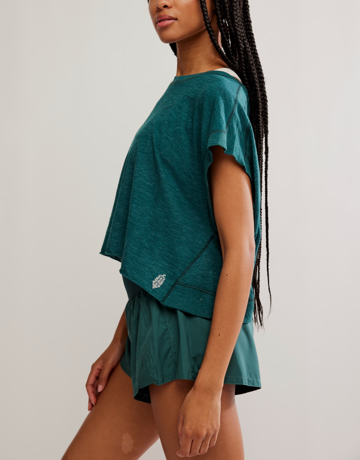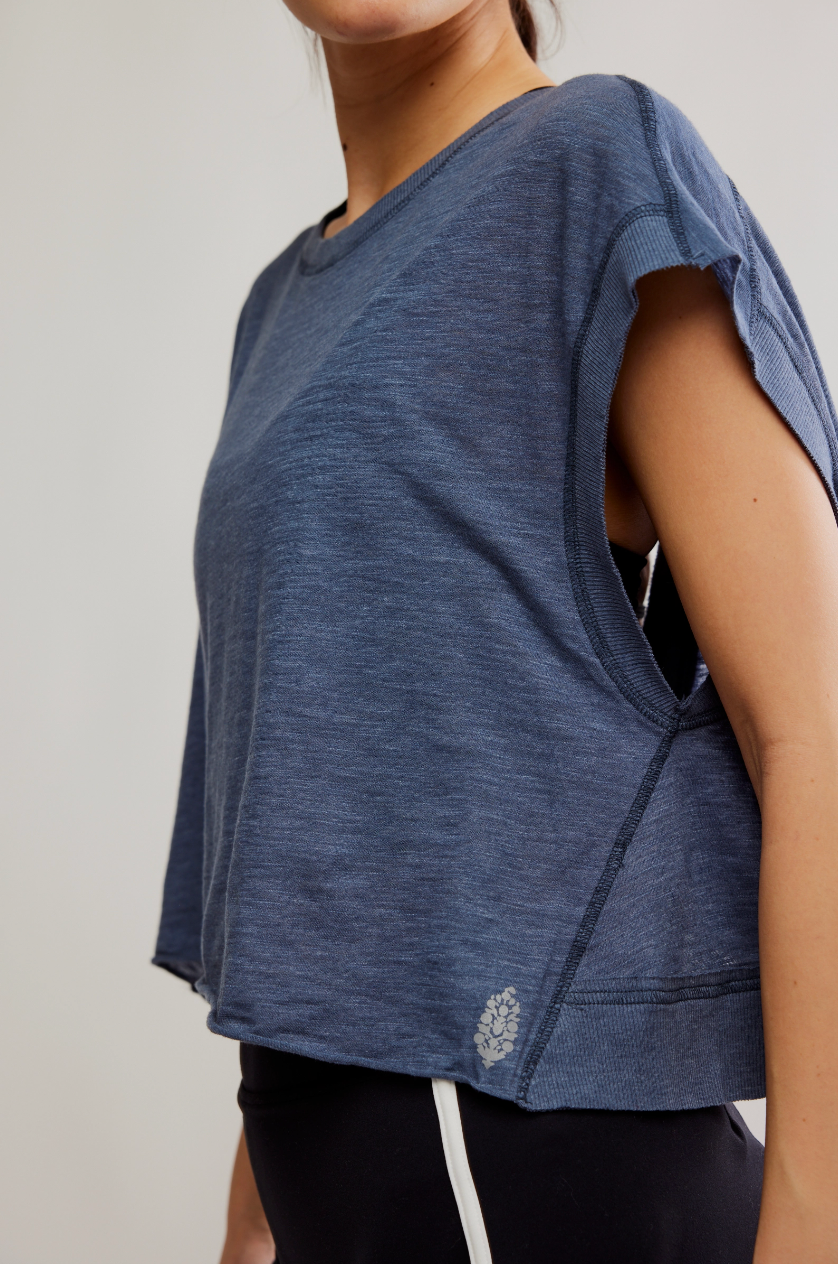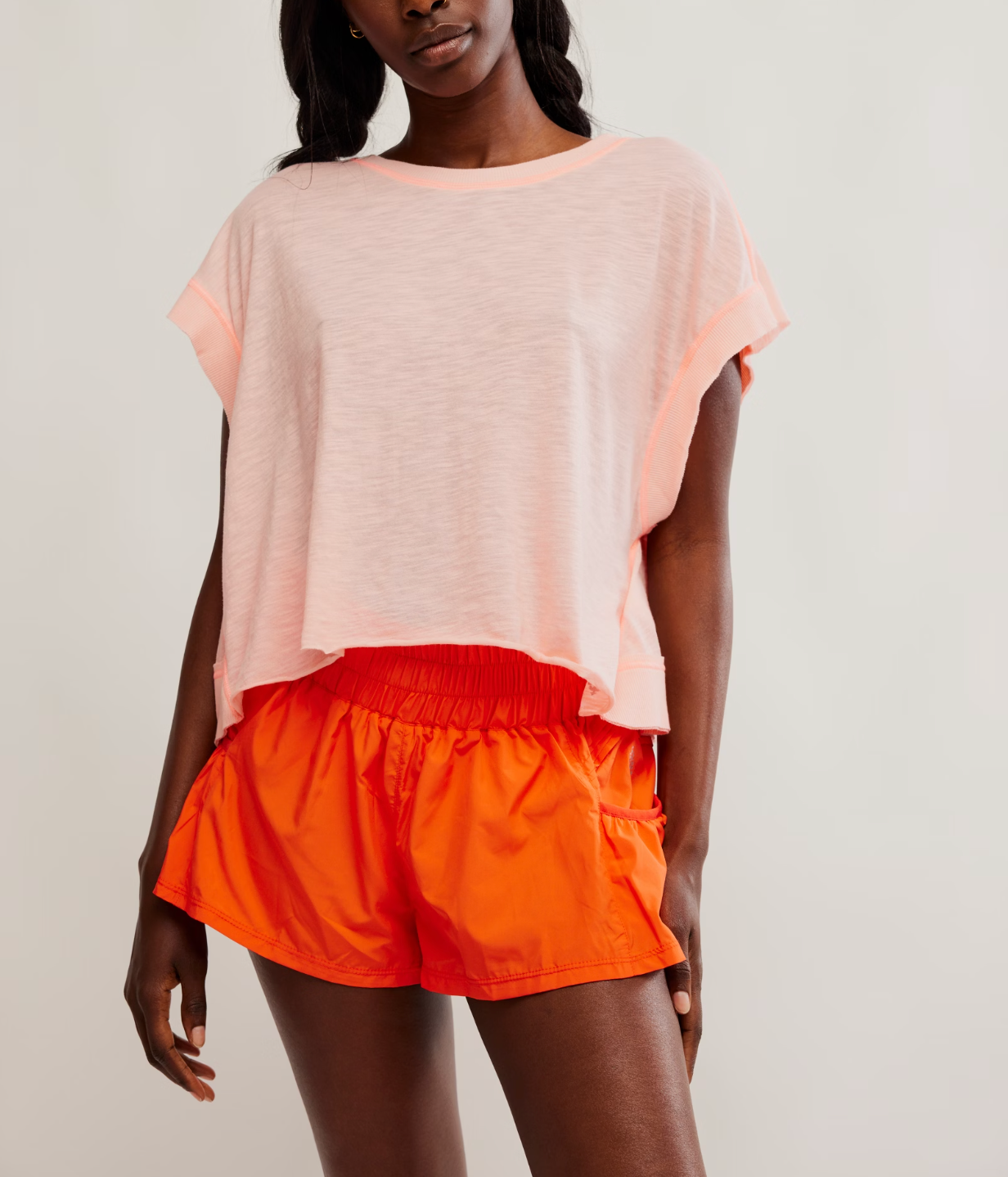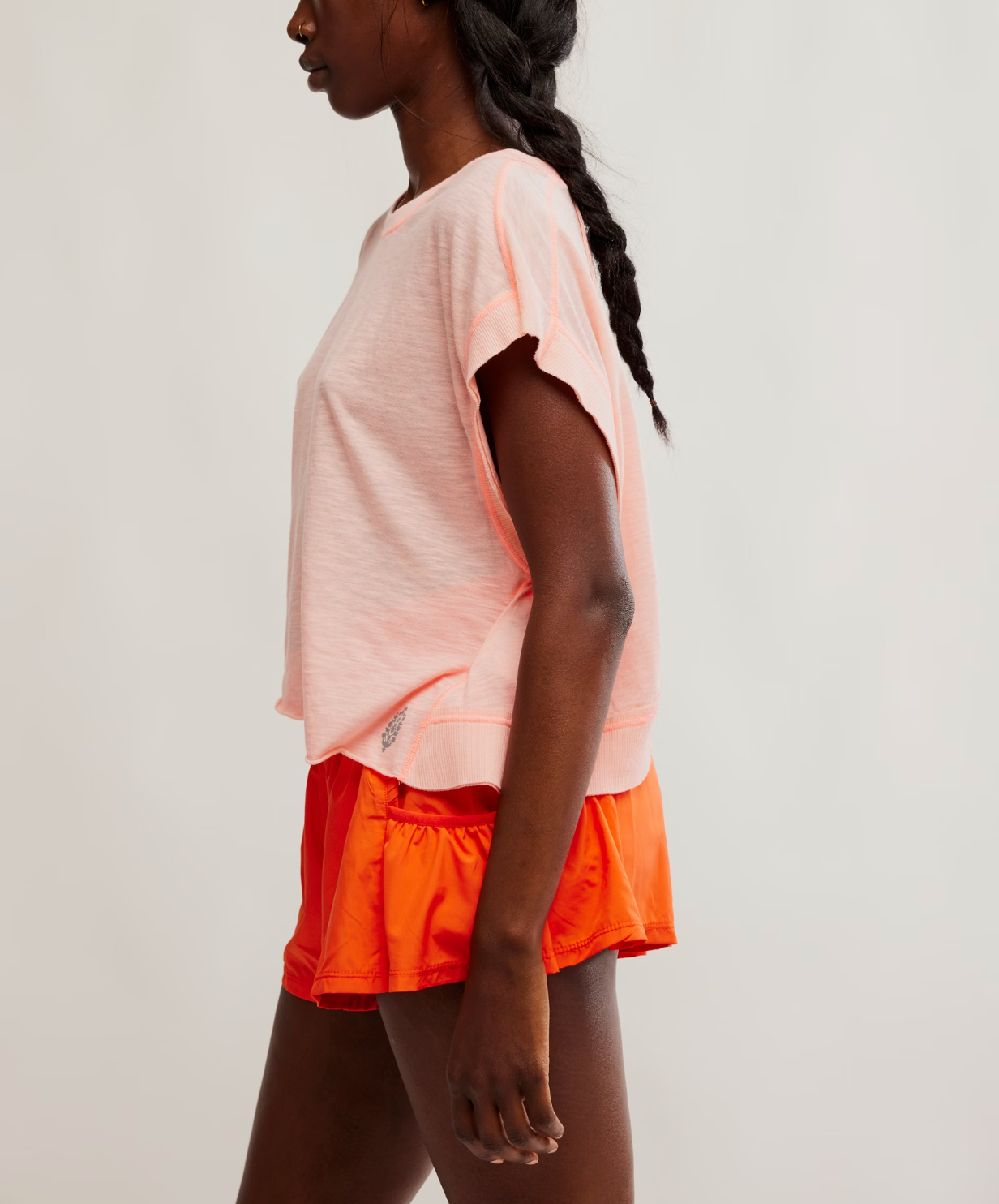 Make your next move in this light and airy layering tee featured in a slouchy design with a wrapped cutout back that’ll keep you cool through all your workouts.