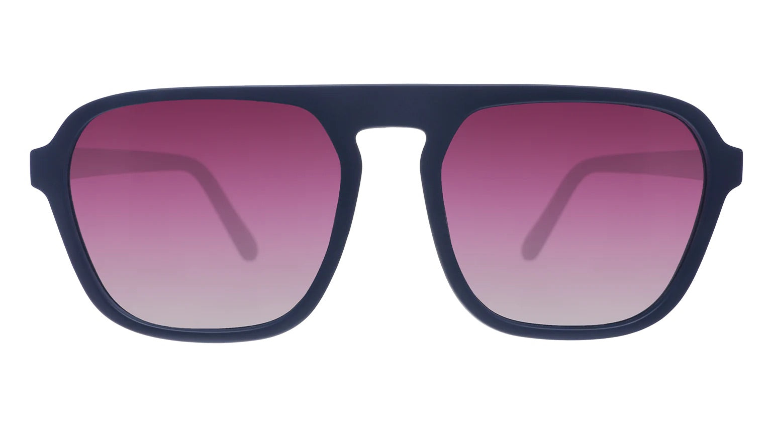 Do you ever get that strange feeling that you've been here before?! Don't worry. It's probably just a glitch in the matrix. We swear you've never seen these dark blue square aviators with purple gradient lenses & vintage flair before. (Or have you?)