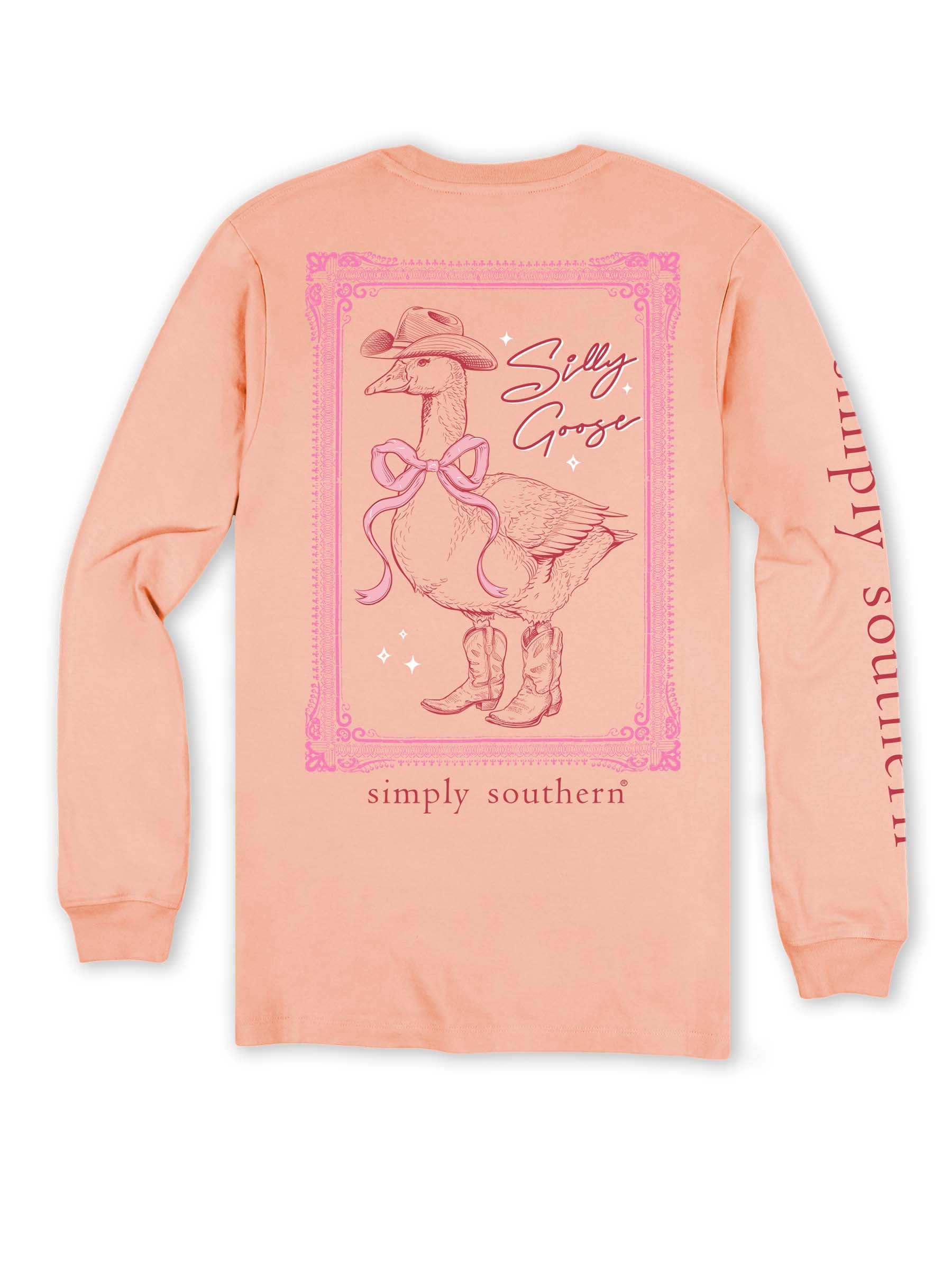 Be the silliest goose in town with this fun and flirty women's long sleeve tee from Simply Southern Brand. Embrace your playful side with this quirky t-shirt that's sure to make a statement. Perfect for any casual occasion, this top will have you feeling confident and carefree.