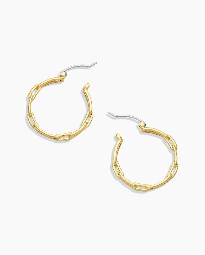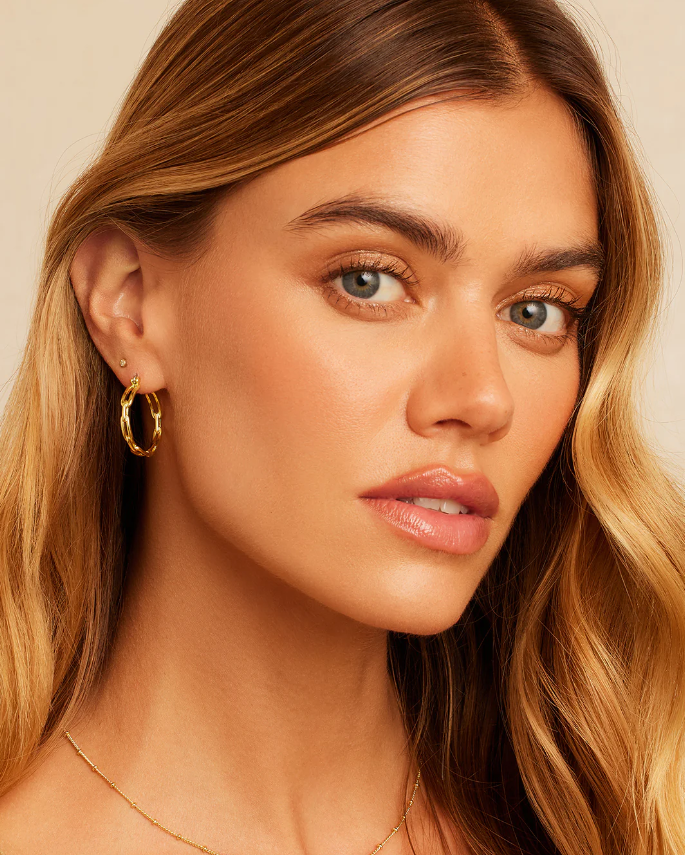 Turn heads in these beautiful chain-link inspired hoops. We love these hoops stacked with dainty studs.