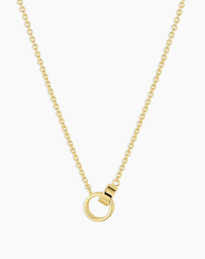 The Rose Interlocking Necklace makes a subtle yet bold statement. Featuring two interlocking circles, it's the perfect piece to wear alone or layer with other necklaces. Style advice: position the pendant to rest just above the front of your neck for the perfect fit.