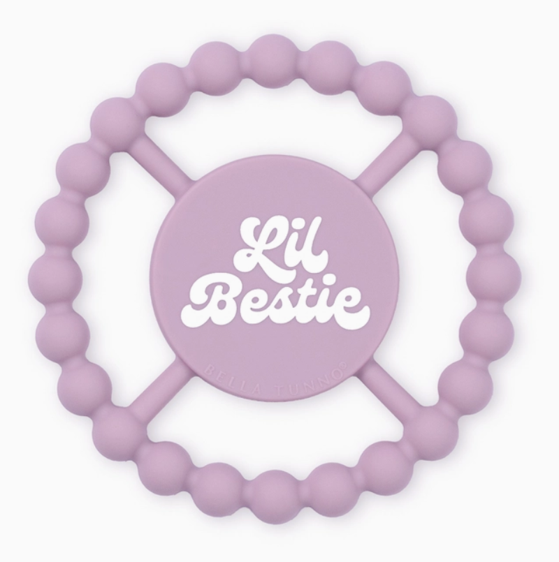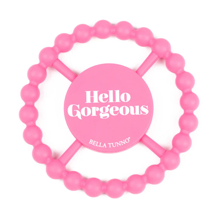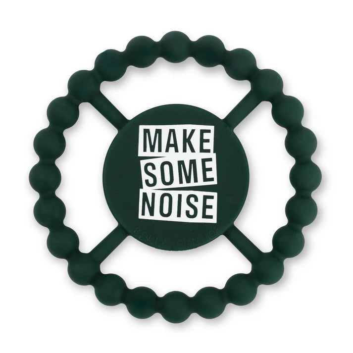 This Bella Tunno teething toy is a silicone teether that will soothe sore gums and provide sensory stimulation. Bella Tunno designed this teether with one thing in mind: teething relief for baby that translates into peace and quiet for parents. The silicone beaded material provides an attractive texture for mouthing and teething. The Happy Teether is easy to grip from any angle and gives the right amount of resistance to provide pain relief for early teeth.