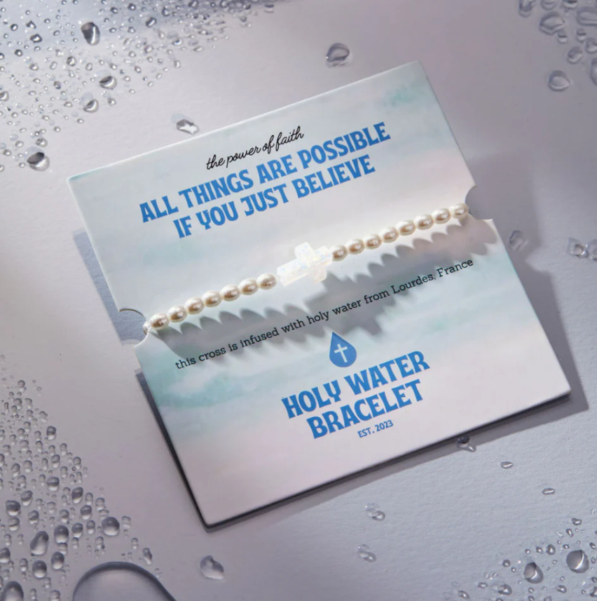 An everyday essential finished with waterproof beads and featuring our signature cross infused with authentic holy water sourced directly from Lourdes, France.
