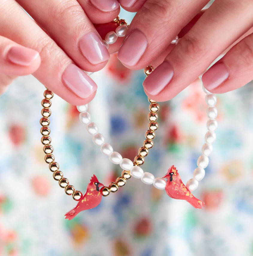 Red Cardinal Bracelet In Crystal Pearl