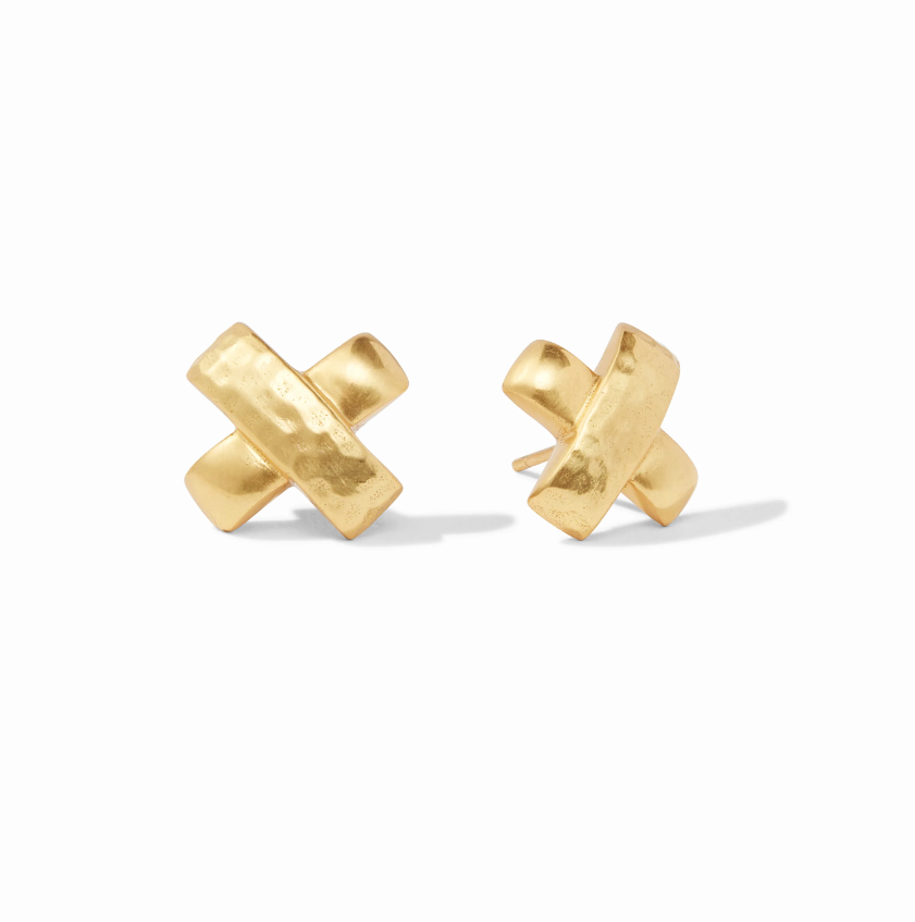 Smooth meets texture in the overlapping elements of the X-shape, a lightly hammered bar atop another bar with a satiny finish.