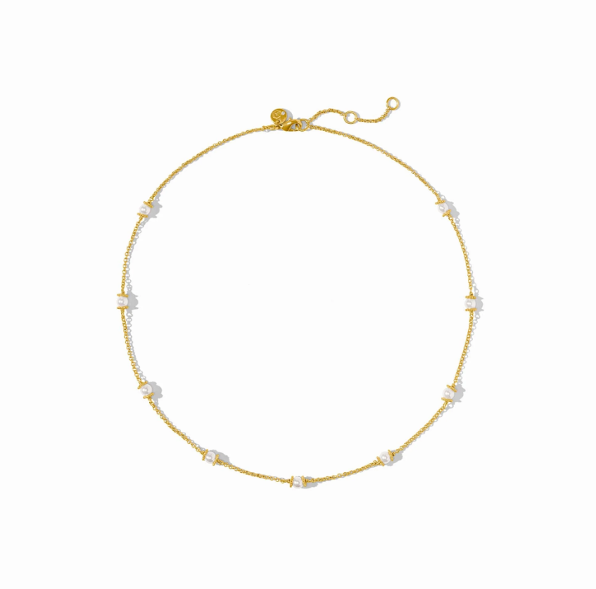 Perfectly polished gemstone spheres with finely beaded golden caps appear to float along this necklace's delicate Venetian box chain. Features an adjustable closure.