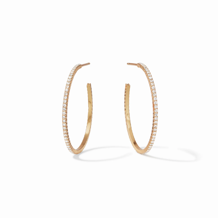 Sparkle and shine in a pair of striking CZ hoop earrings adorned with pavé CZ. These slender, thin hoops are available in four different sizes.