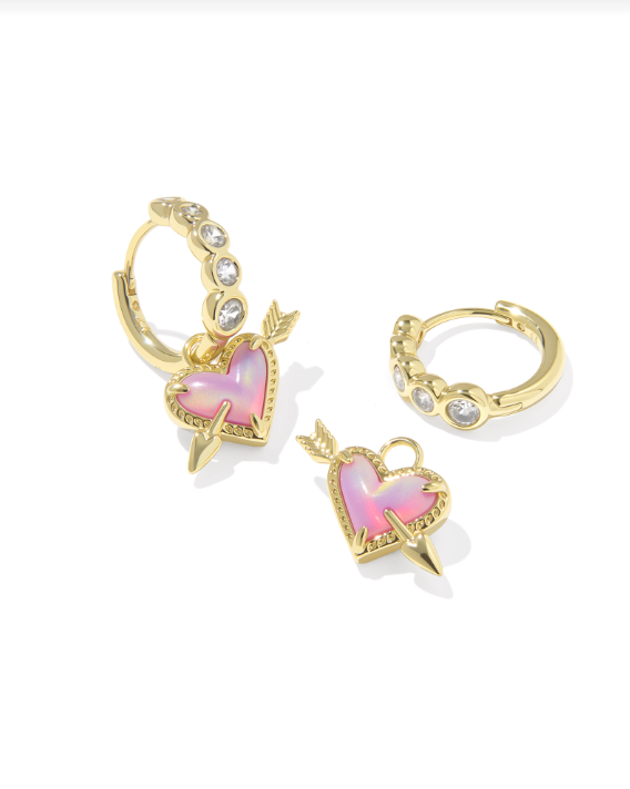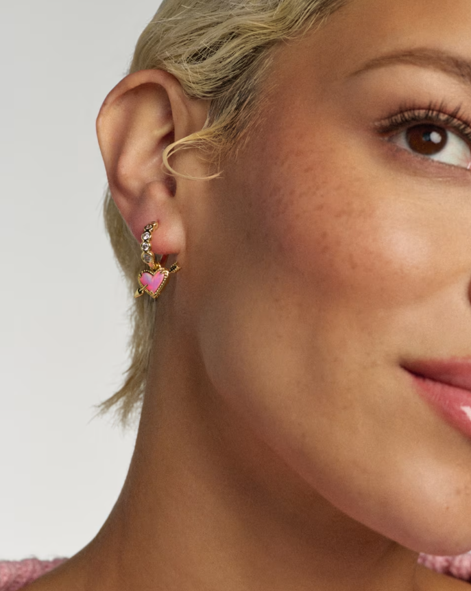 Adorably playful, the Ari Heart Arrow Huggie Earrings add a sweet touch to any outfit. Featuring white sparkling CZ hoops with a removable and reversible organic arrow heart charm, you can wear the stone side or flip for an all-metal look. With so many options for customization, these earrings are sure to steal your heart.