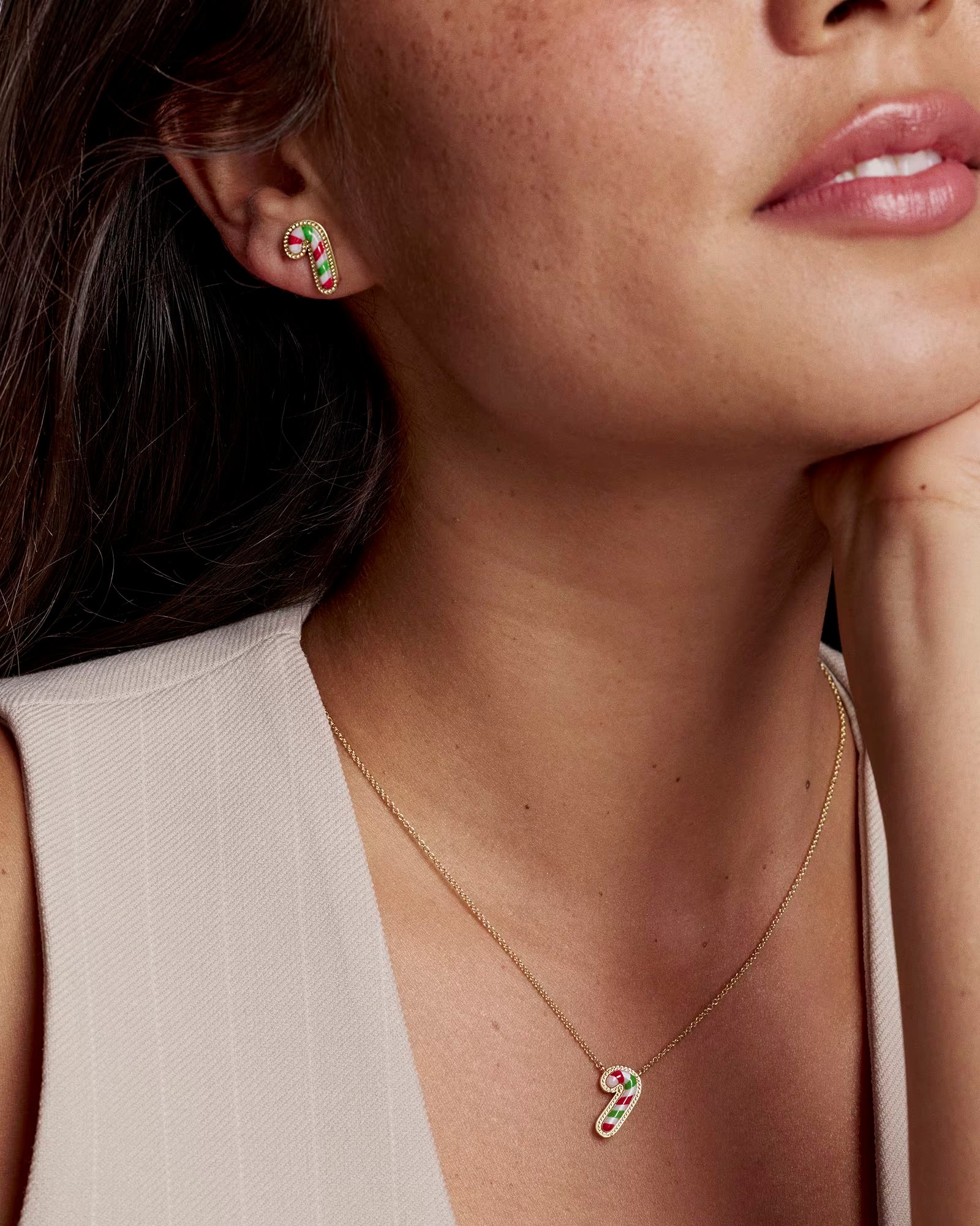These earrings are as sweet as can be! Featuring red and green enamel and white mother-of-pearl stripes, the Candy Cane Gold Stud Earrings are ready to bring some festive fun to all your holiday looks.