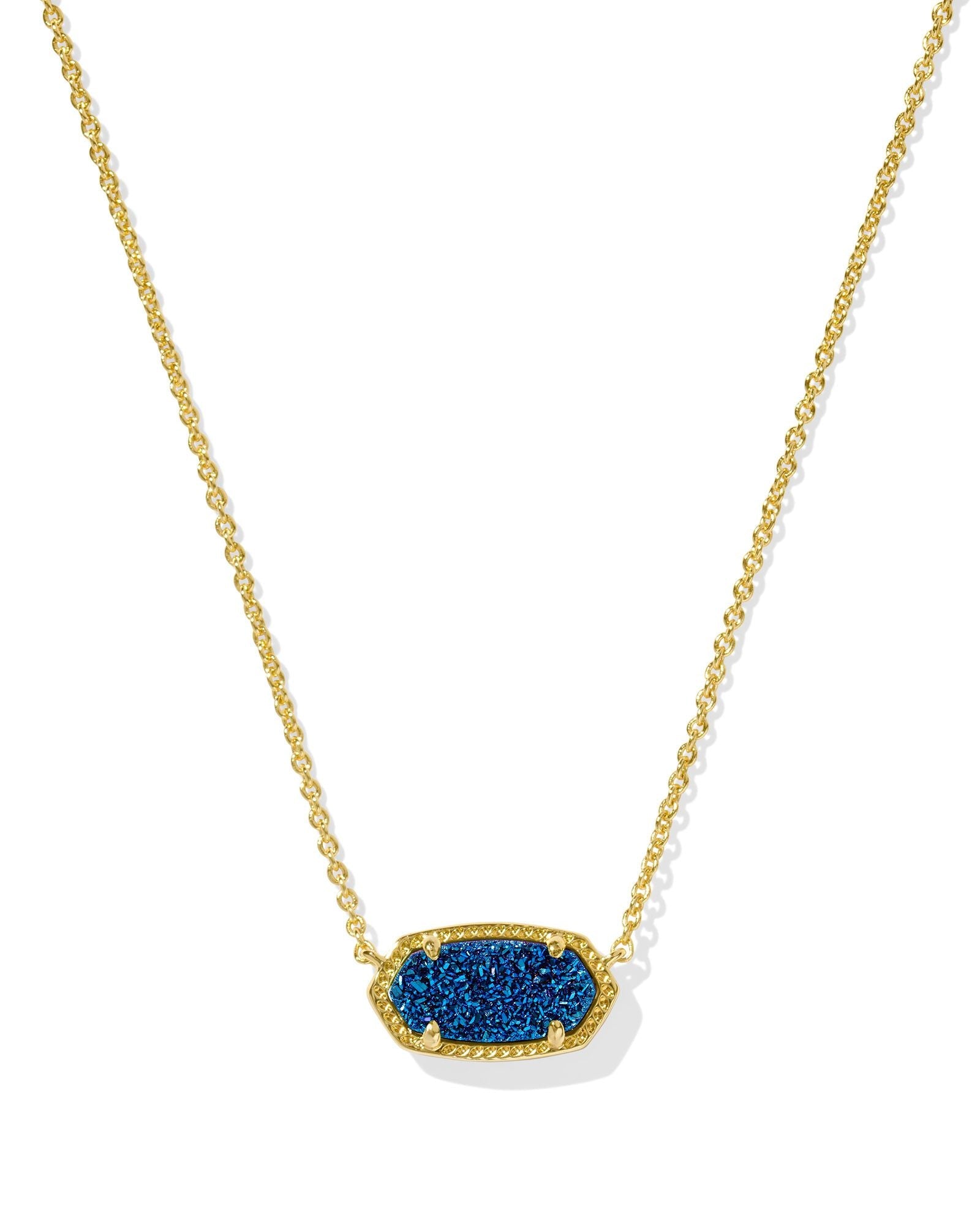 A dainty stone and delicate metallic chain combine to create the Elisa Gold Short Pendant Necklace in Blue Drusy, your new favorite wear-anywhere accessory. This pendant necklace can be paired with any look, providing that extra touch of timeless style. Make the Elisa Pendant Necklace a staple in your wardrobe and you will not be disappointed.