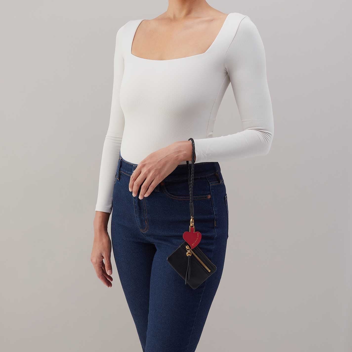 Your phone, cards, and cash are together at last. This wristlet features our signature Lasso heart charm that tucks between your phone and its case to tether the two. Lasso is the ultimate on-the-go accessory.
