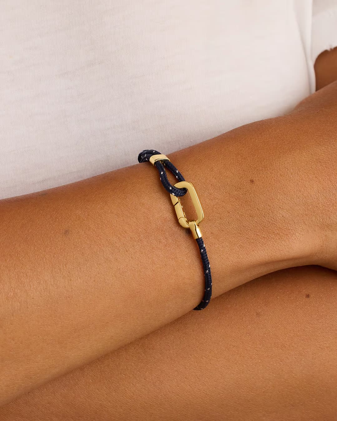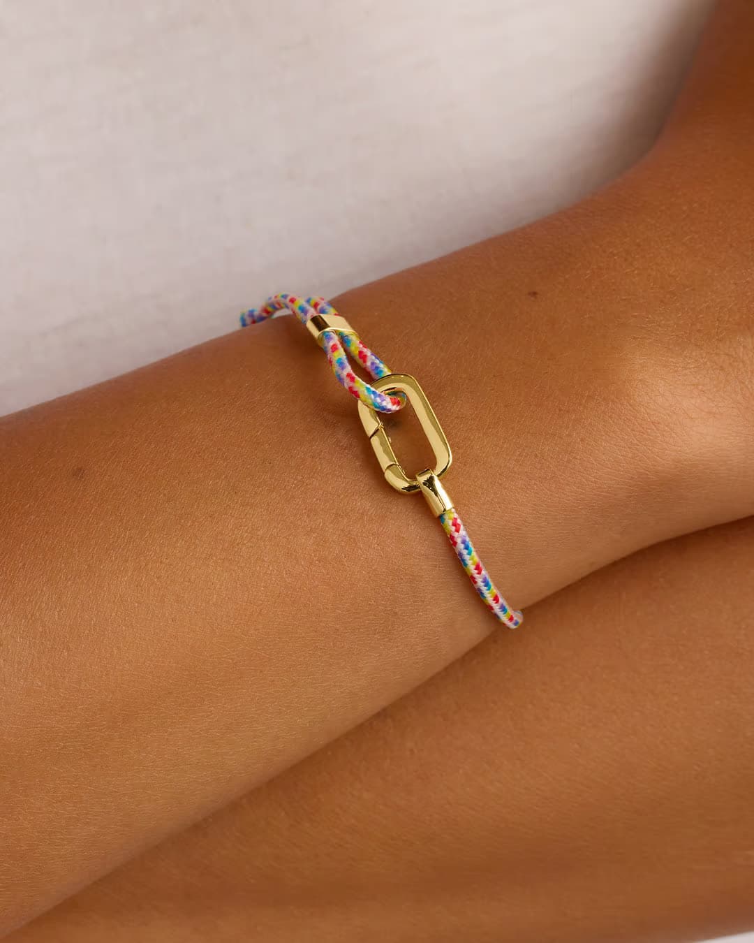 Add a pop of color to your stack with the Link Paracord Bracelet. This cool, lightweight bracelet features a gold plated push hinge closure and pairs perfectly with other gold and diamond pieces. Elevate your bracelet stack with this fun and stylish addition.