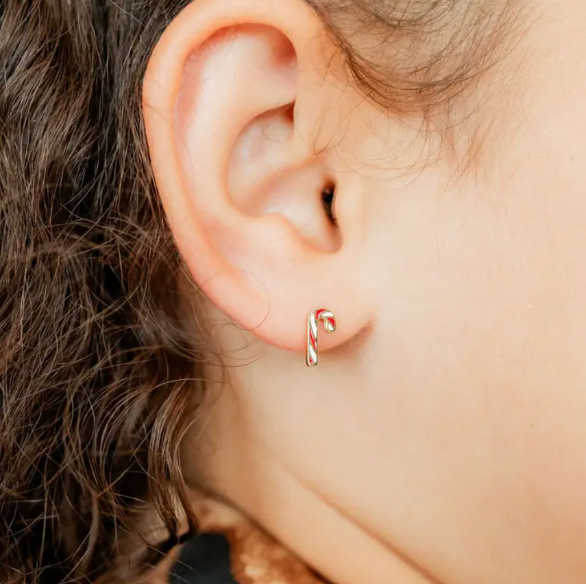 Celebrate the festive season with the Candy Cane Shape Screwback Stud Earrings. These charming earrings feature a classic red and white enamel candy cane design, adding a sweet touch to any outfit. The 9mm size makes them perfect for both kids and adults, and the secure screwback design ensures they stay comfortably in place throughout the day. Whether you're celebrating the holidays or just want to add a bit of fun to your look, these durable, waterproof studs are a perfect match.