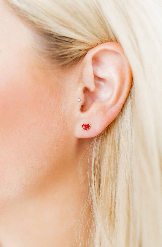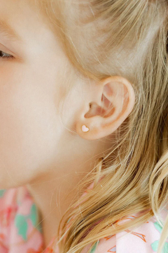 Add a vibrant, playful element to your style with the Nora Heart Pink Stud Earrings. These 7mm enamel-coated pink heart studs are beautifully embellished with sparkles, creating a fun and charming design.