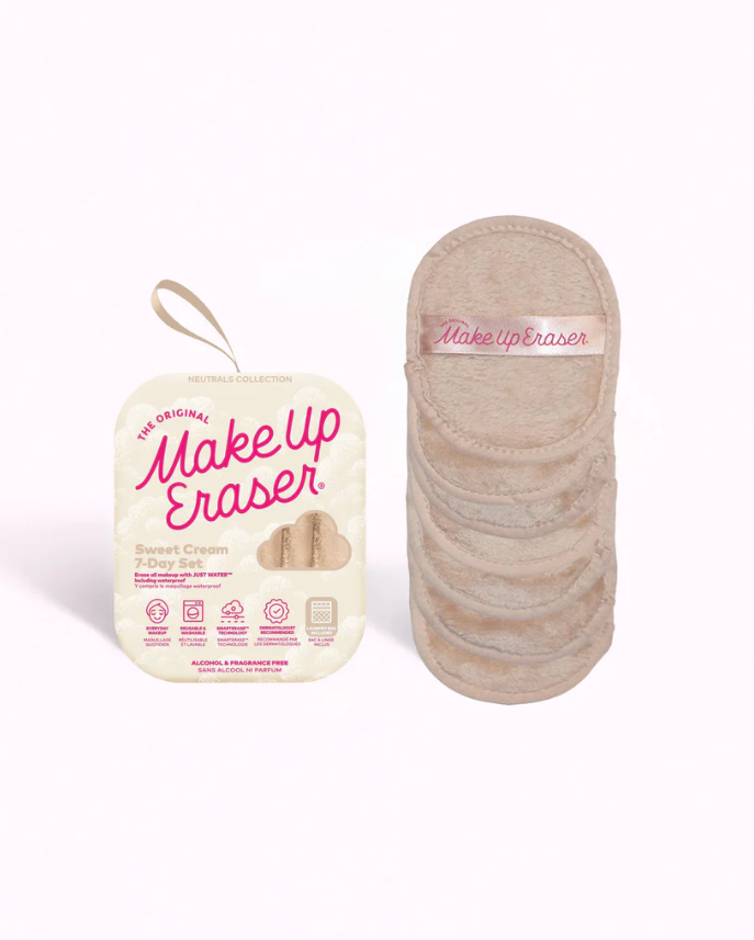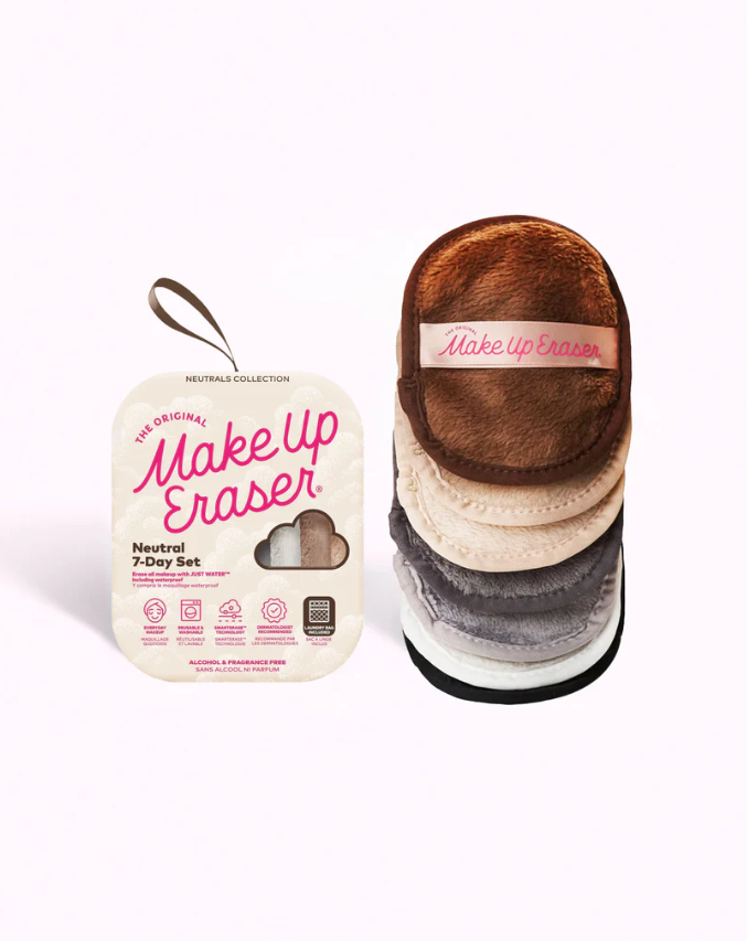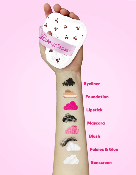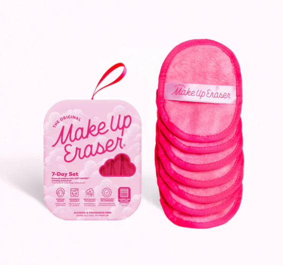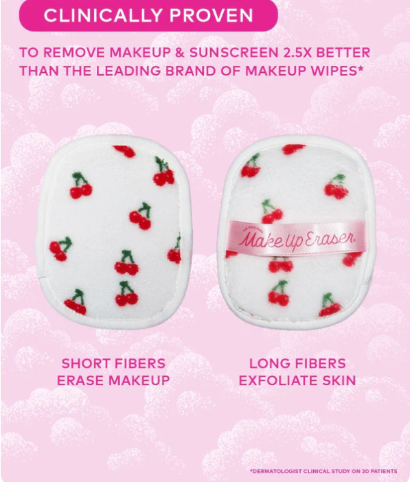 Erase all makeup with JUST WATER™ including waterproof. Our patented, water-activated, cloud-soft fibers gently & easily remove all makeup & sunscreen from pores. 2 in 1 benefit: one side erases makeup & one side exfoliates skin.