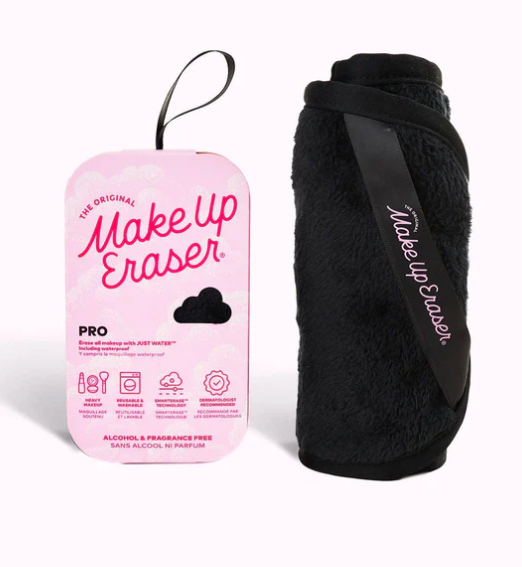Erase all makeup with JUST WATER™ including waterproof. Our patented, water-activated, cloud-soft fibers gently & easily remove all makeup & sunscreen from pores. 2 in 1 benefit: one side erases makeup & one side exfoliates skin.