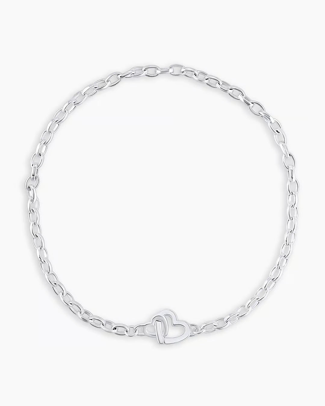 Achieve a romantic look with the Parker Heart Mini Bracelet. This gorgeous silver-plated chain bracelet features a classic interlocking heart design that is perfect for any occasion. To wear, stack alongside other gold or beaded bracelets. More is more!