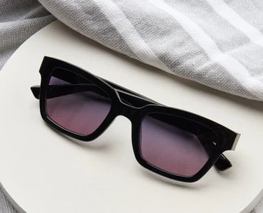 Myrtle embodies a daring yet feminine allure, offering a versatile style that adapts to any mood. Available in three striking color options—Black with violet gradient lenses or Gray Tortoise with smoky gradient lenses—these bold rectangular frames make a refined statement. A luxe metal hinge adds a touch of high fashion sophistication, while maintaining an effortless sense of ease.