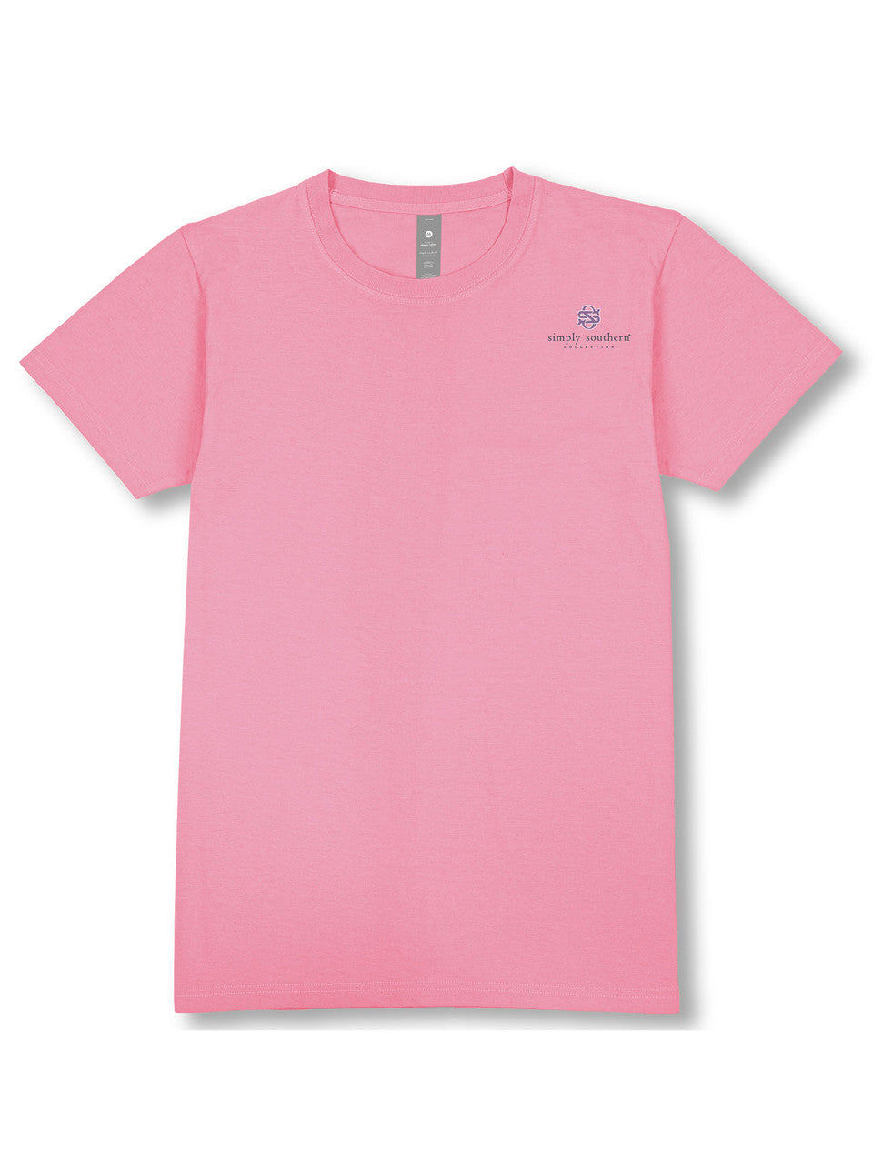 Fancy candy pink SS shirt with the phrase 'Doing my best and letting God do the rest' above a cluster of wild flowers.