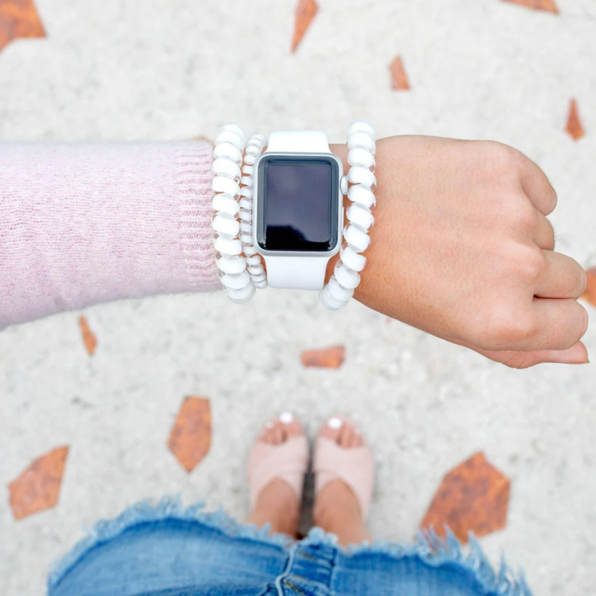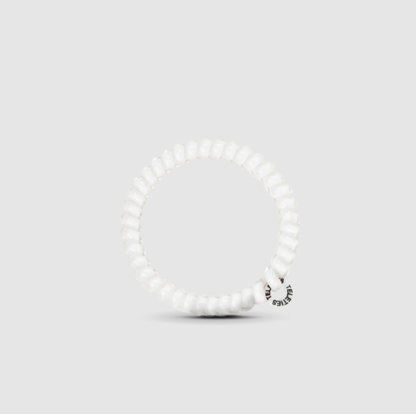 Coconut White Small Hair Ties in White offer a strong grip without damage, doubling as a chic wrist accessory when not in use. Your new favorite hair essentials all year round.