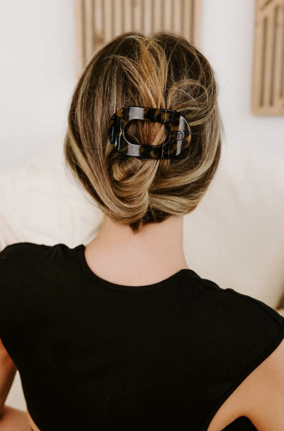 Lay flat and relax with the new TELETIES Tortoise Small Flat Round Hair Clip. This hair clip is designed to allow you to lay back flat, do yoga, or sit comfortably in a seat with a headrest, and it is made with the same material that is nearly unbreakable.