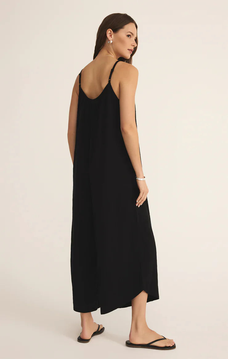 This flared jumpsuit is a one-and-done wonder with adjustable spaghetti straps, a scoop neck, and side seam pockets. Made from textured slub knit fabric, its cropped length and sleeveless design are ready for every adventure.