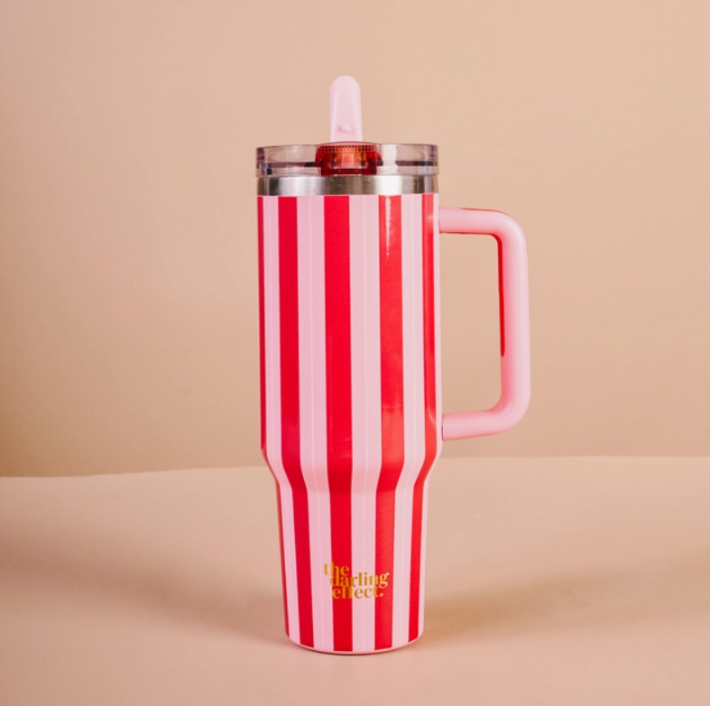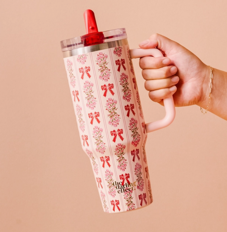 Celebrate the season with every sip in the 40 oz Lifestyle Flip Straw Tumbler — ideal for peppermint mochas, creamy eggnog lattes, or refreshing iced cocoa during festive gatherings. Its Lifestyle Flip Straw Lid tucks away to minimize leaks, and the sleek design fits perfectly in your car cup holder as you dash through holiday errands or head to winter markets. Triple-walled insulation keeps your drink perfectly chilled for hours, whether you’re wrapping gifts by the fire or enjoying a snowy stroll. With a generous 40 oz capacity and a comfy silicone grip handle, this tumbler is your go-to for all the magic of the holidays.